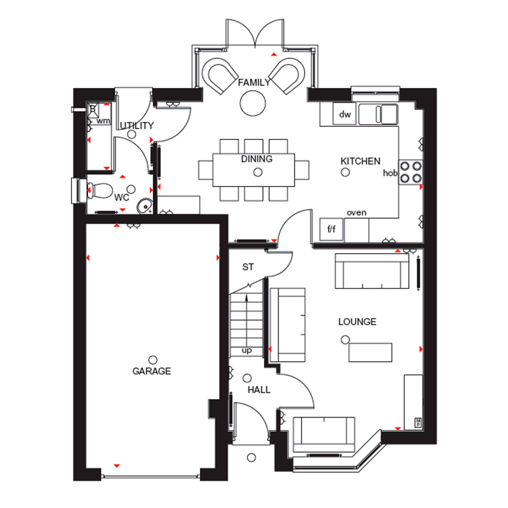 This superior four bedroom home has a stylish kitchen and dining room with family area and full height glazed bay leading to the garden. On the ground floor there is also a lounge with bay window and utility room. The first floor has four double bedrooms with an en suite to the master bedroom and a family bathroom fitted with modern sanitaryware and tiling. This home comes with integral garage.