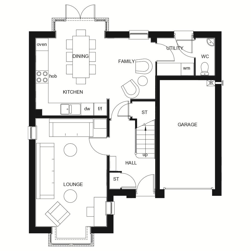 This lovely detached home has a spacious lounge that lets in plenty of light through the bay window. The open plan kitchen/dining area with bay style doors opening out to the south-facing rear gardenis perfect for when you have friends round. The kitchen also has a separate utility for those muddy boots! Upstairs you'll find four double bedrooms with an en suite shower room to the master bedroom and family bathroom. This home also has an integral garage - for that extra bit of space and security.