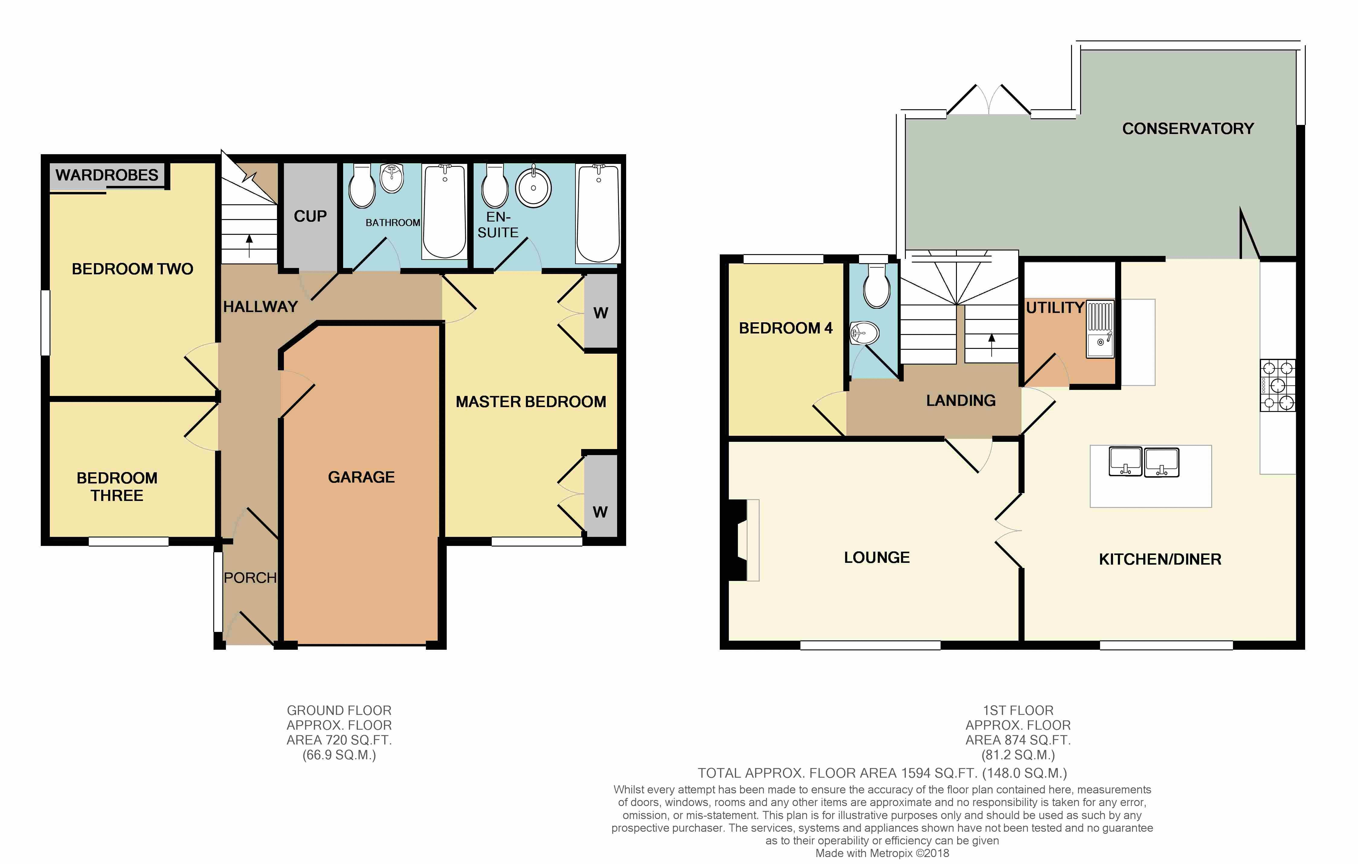 Stairs rise to the upper level, of mainly living accommodation, taking advantage of the far reaching views. Front lounge, having open grate to fire place, door to landing and double doors, leading into the Kitchen. The most appealing L shaped Kitchen/diner has been refurbished, with ‘shaker’ styled units with granite work surfaces over, central island unit housing a double sink, and dishwasher. Range style oven, wine cooler, microwave/grill and space for an American style fridge/freezer. Wood framed folding doors access the excellent heated rear conservatory, with French doors to the garden. A small utility room has been placed off the kitchen, housing a sink, and combination central heating boiler and plumbing for appliances. This floor is finished off with Bedroom four and a separate w.C. Off the landing. Outside: Has a sweeping rear garden of good proportion, with seating areas, mature shrubs and trees to borders, timber shed and side gate leading down to the front. Other benefits include: Double glazing and drop down ladder to partially boarded loft space. Superb family home in excellent condition, well worth A further inspection.