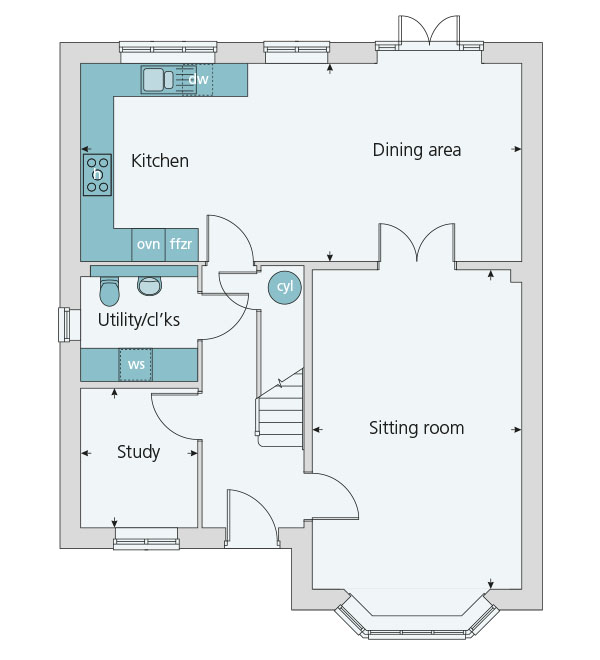 This stunning home has an amazing 26’ full width family kitchen with glazed doors. Downstairs also offers a study and utility/cloakroom while upstairs has 5 bedrooms (1 with en suite) plus a family bathroom. Each home also has a garage and parking.