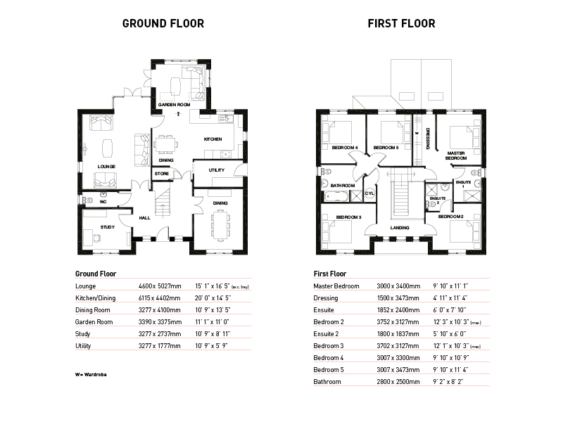 Upstairs there are five double bedrooms and a family bathroom with both bath & shower facilities. Bedroom two is ideal as a guest room as it benefits from its own en-suite, while the master bedroom has the luxury of a dressing area, as well as a stylish en-suite with large shower.
