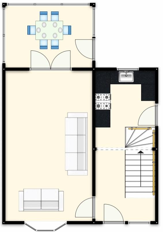 A family sized lounge complete with a double glazed bay window to the front, inset ceiling light points and a wall mounted radiator. Fire with feature surround and tiled flooring. Access doors into the conservatory