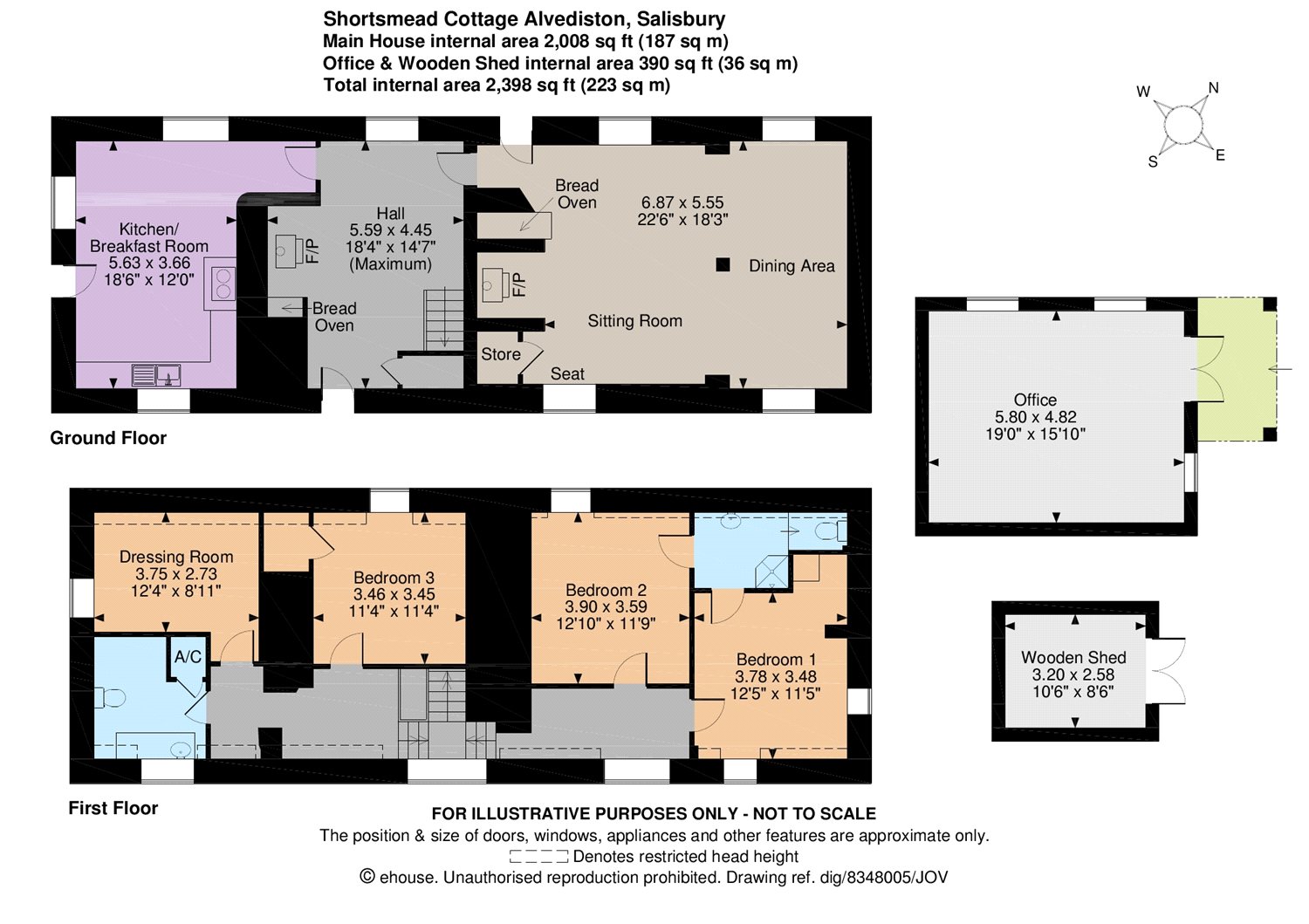Upstairs there are three well-proportioned bedrooms, including two that share a Jack and Jill shower room. There is also a dressing room, which could be used as a smaller fourth bedroom, and a family bathroom.