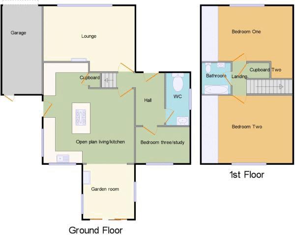 To the front of the property the garden is mainly laid lawn and houses a mature 'Cherry blossom' tree.