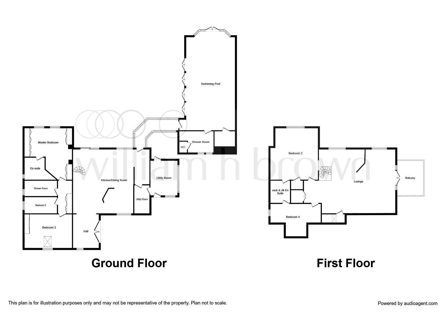 As you enter the property through the front door you enter in to the spacious entrance hall and large open plan kitchen diner. Just off of the kitchen you have two utility rooms, a wood storage area and a covered walk way to the swimming pool and changing rooms. Three of the five double bedrooms reside on the ground floor along with the family bathroom. Access the first floor via the spiral staircase and the first thing that captures you is the feeling of space created by the vaulted ceiling. A spacious lounge with feature doors and window from floor to apex, large walk on balcony and amazing views of the surrounding countryside. Also on the first floor is a large storage cupboard and two large double bedrooms with a Jack And Jill style En-Suite.
