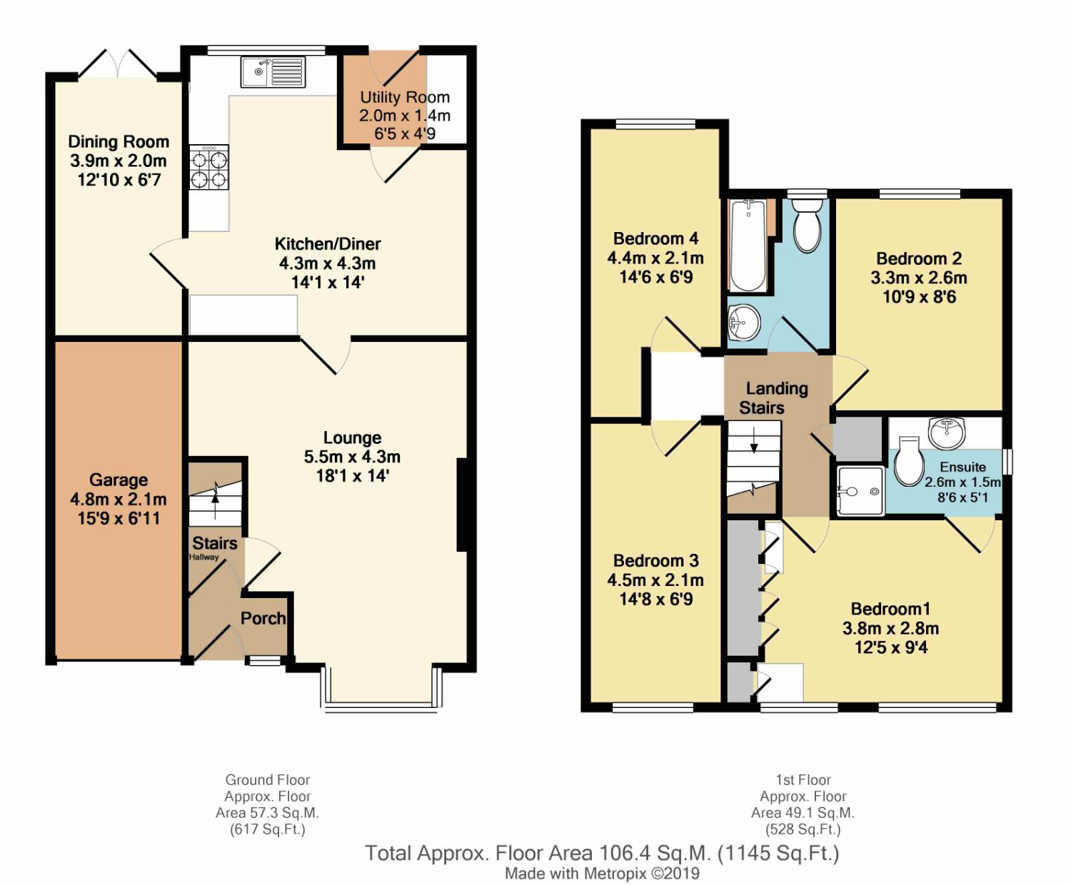 To the first floor are four bedrooms and the modern family bathroom. The master bedroom offers a fabulous outlook, has built in wardrobes and en suite shower room, three further good sized bedrooms and the family bathroom has a contemporary three piece suite in white comprising wash hand basin, low flush wc and bath with mains shower above with drench head and shower screen. Tiling to the splash backs, tiling to the floor and ladder radiator.