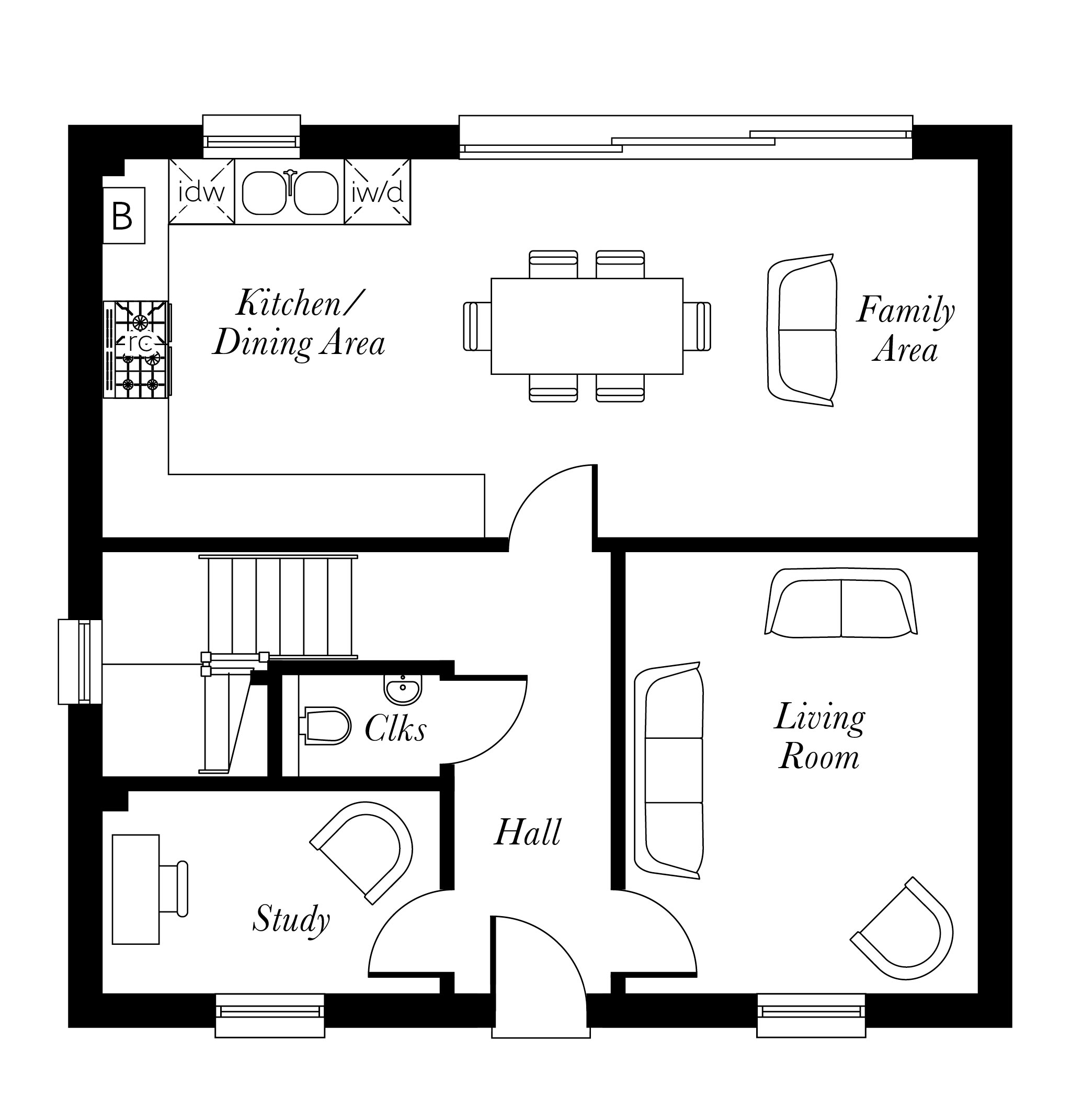 The spacious living room looks out onto the front of the property, as does the study which can be found across the hallway from the living room.