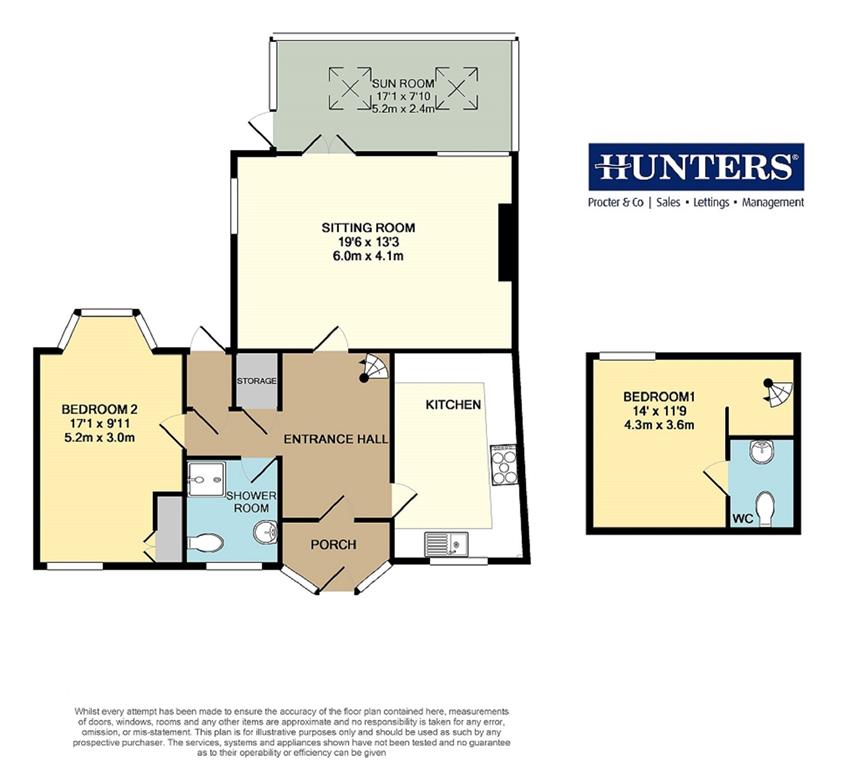 An enclosed storm porch with tiled floor provides a welcoming entrance into the reception hall with spiral staircase to the first floor guest suite, storage cupboard and rear entrance lobby. The generous sized living-dining room offers ample space for sofas and furniture along with a dining suite. A period style fireplace with coal effect gas fire has fitted bookshelves to either side, and creates an attractive focal point. Doors then lead into a large sun-room with enjoys attractive views onto the delightful rear gardens. The fitted kitchen provides ample space for food preparation and incorporates a range of beach effect base and wall units, with granite effect worktops over, and having space for a fridge / freezer, dishwasher and washing machine and includes a fitted fan oven, grill and extractor hood.
