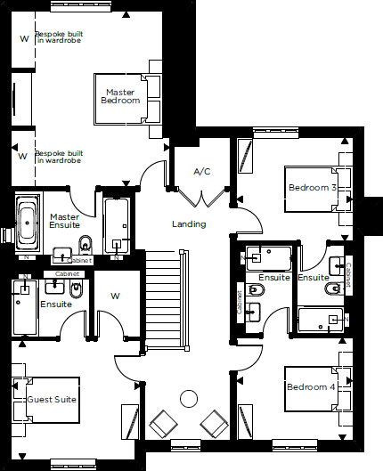 On the first floor there is the luxury of four double bedrooms and four ensuites. The master bedroom boasts bespoke wardrobes and a four piece ensuite bathroom.