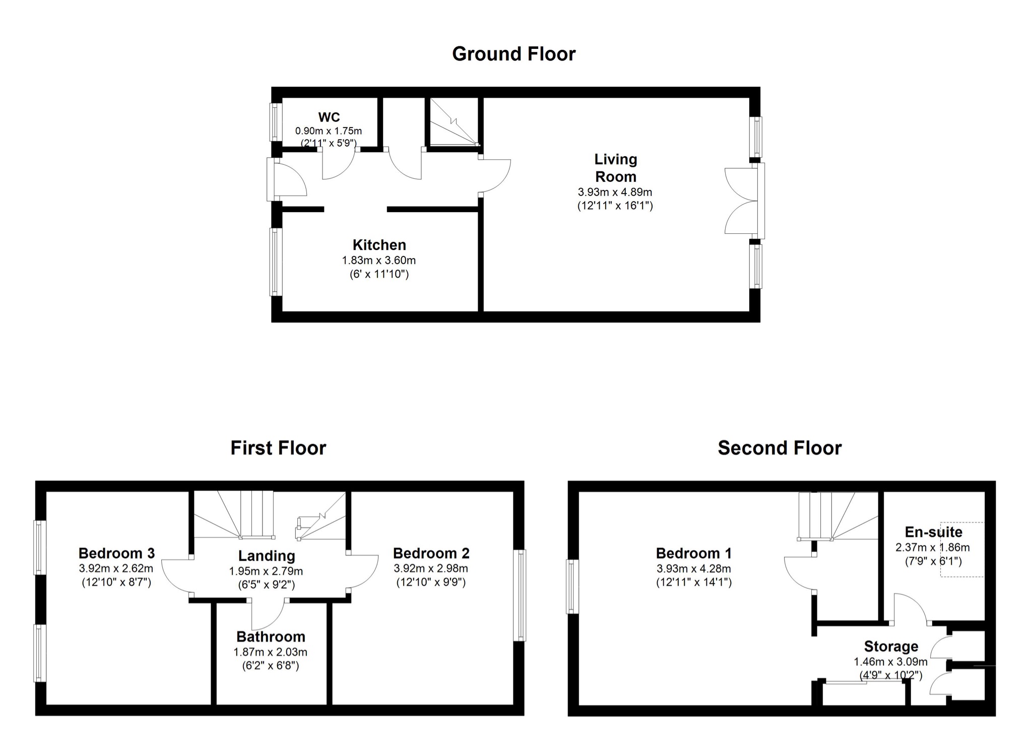 To the first floor there are two double bedrooms and a family bathroom with modern white bathroom suite. The second floor has a large master suite with storage and an en-suite bathroom.