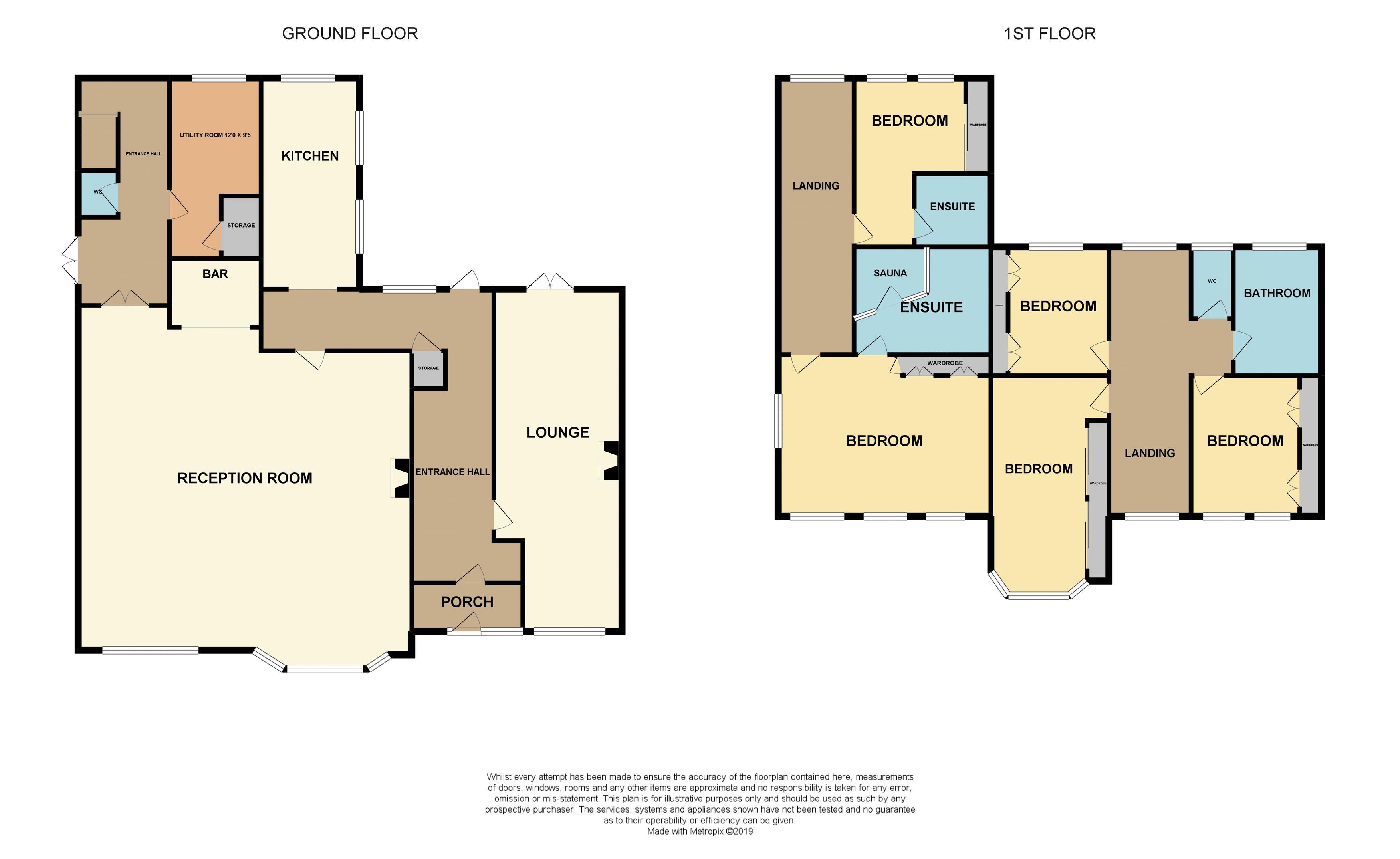 From here, this leads to a second entrance hallway (side door) with ground floor WC and 12' x 9' utility room. Second staircase leads to first floor with two bedrooms, both fantastic sizes and both offering en-suite shower rooms (master with sauna).