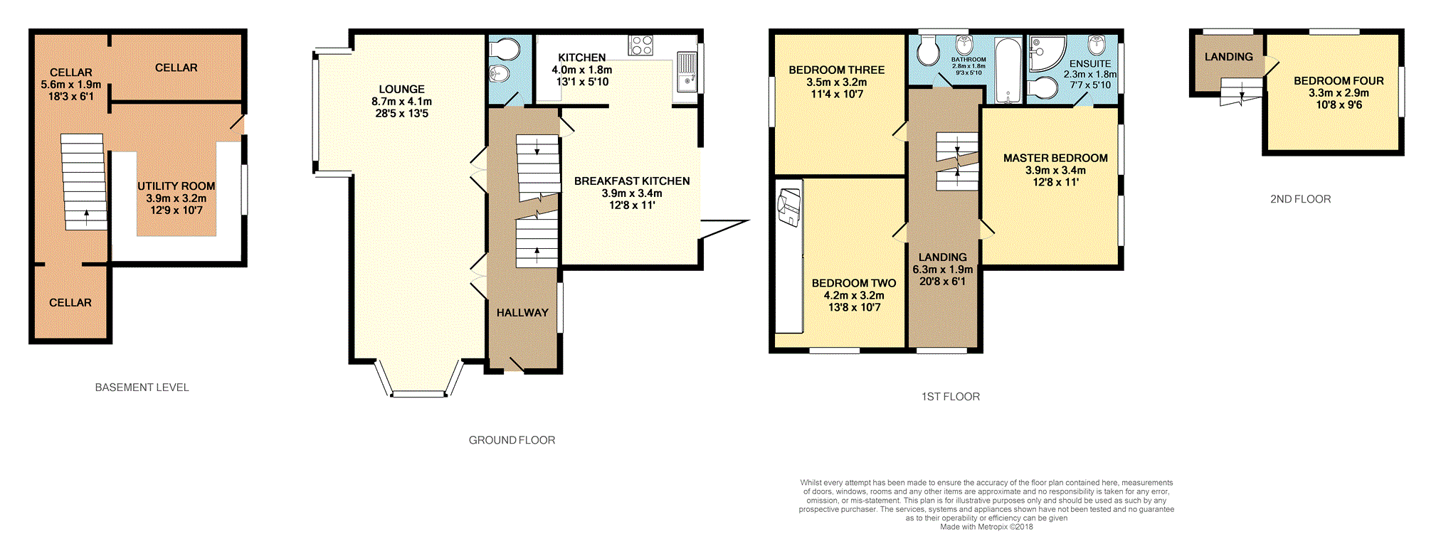 Four cellar areas. Combi central heating / hot water boiler. Utility room with fitted base units, larder units and work surfaces. Plumbing for automatic washing machine. Vent for tumble dryer. Power points and lighting throughout.