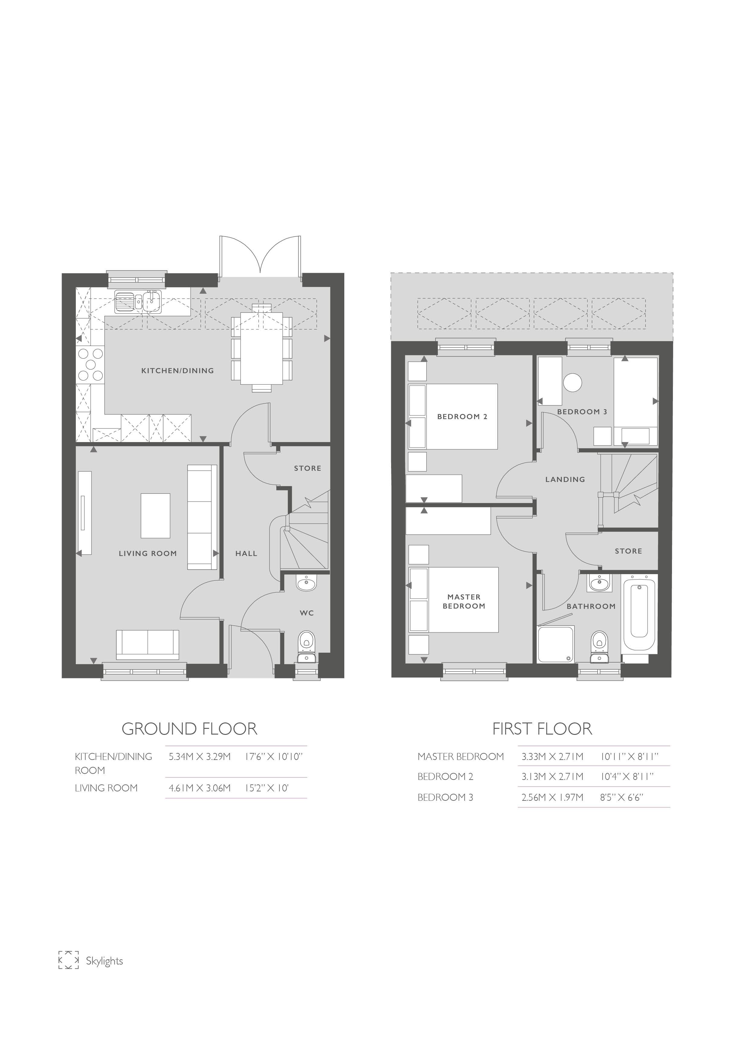Modern, light and spacious, The Ellesmere answers all the needs of twenty-first century family living. At the heart of the home sits a cool and contemporary kitchen/dining room with French doors that lead out to the garden. With natural lighting by way of well-positioned skylight windows, the large separate living room provides a sanctuary for relaxation and family time together. Upstairs the feeling of space continues with three well-proportioned bedrooms. All this is complemented by a family bathroom with separate shower cubicle and Porcelanosa tiles displayed to best possible effect.