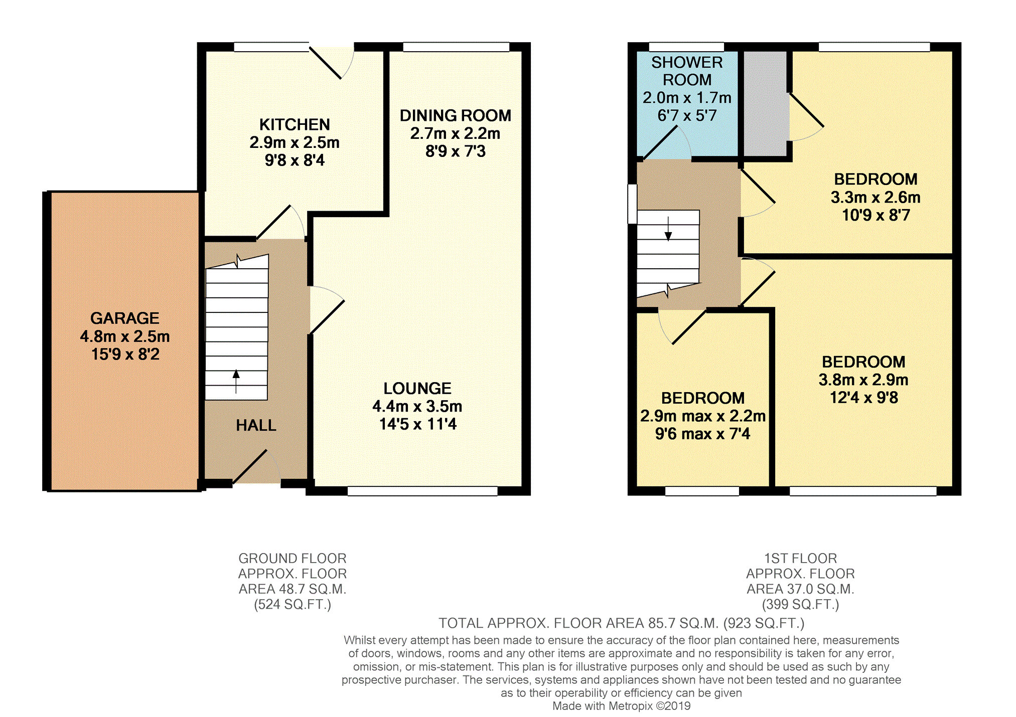 The property briefly comprises entrance hallway, open plan lounge/diner and kitchen. To the first floor are three bedroom and a shower room. To the front of the property is a garden and driveway leading to the garage while the private rear garden is mainly laid to lawn.