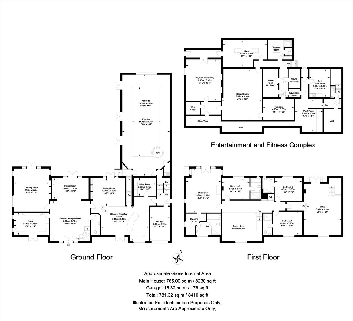 Encompassing an entertainment area with a compendium of rooms including gymnasium, changing rooms with shower facilities, steam room and sauna (not fitted). Impressive billiard room, cinema, playroom/workshop, equipment room/server storage, wine cellar and plant rooms with multiple storage options.
