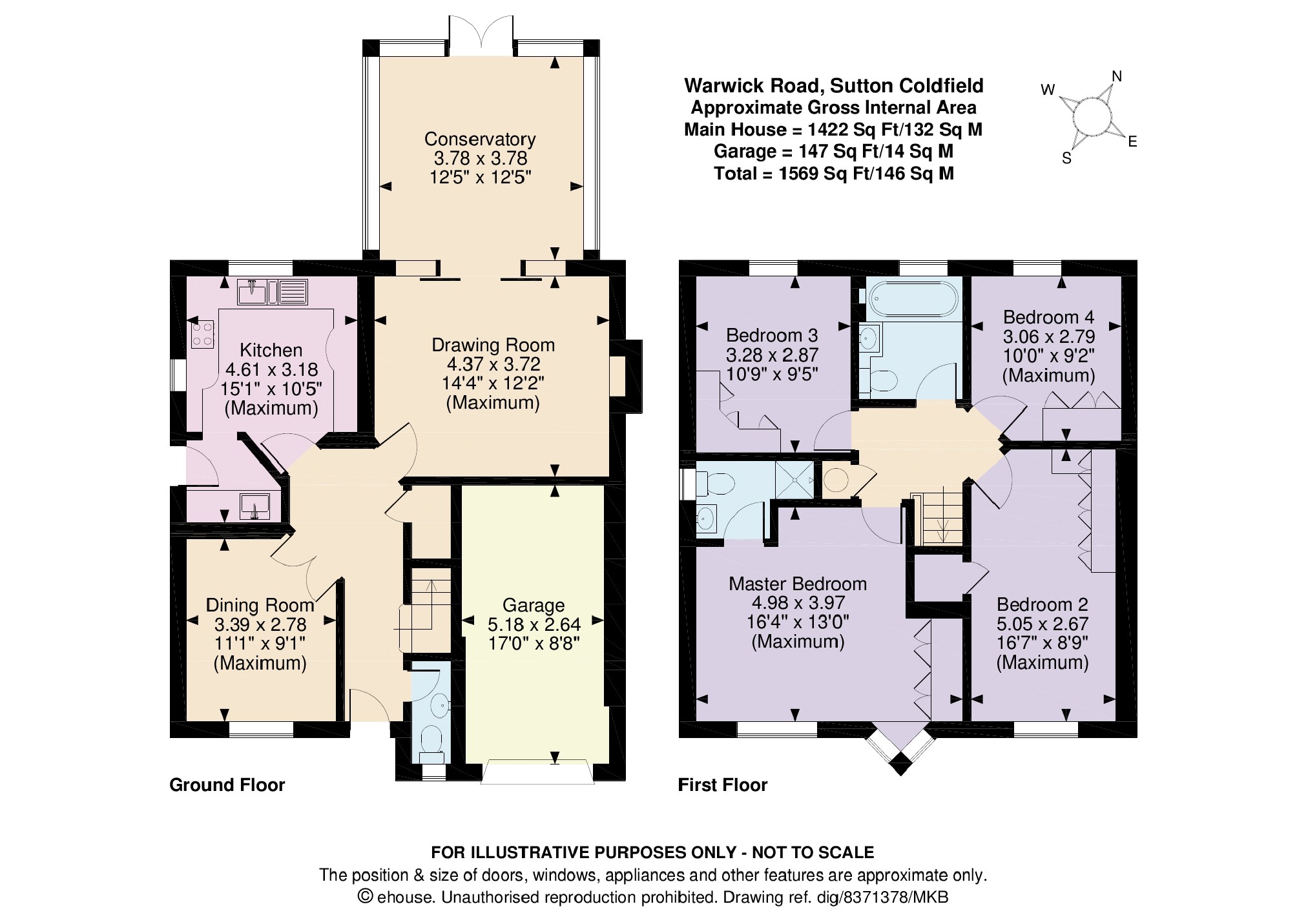 Approximate gross internal floor area including garage 1569 square feet (146 square metres). EPC rating D.