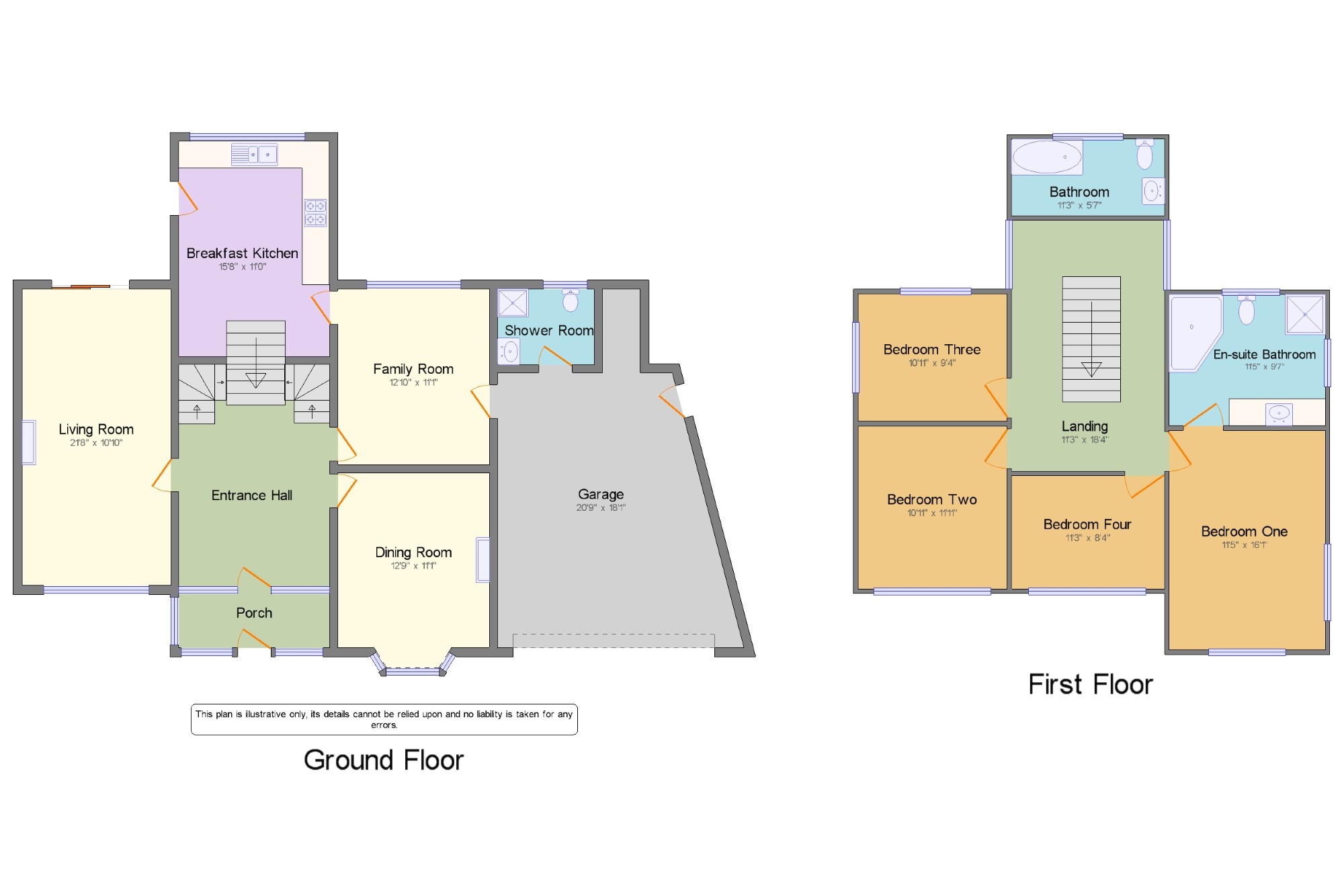 Four Double Bedrooms, Family Bathroom, e-Suite Bathroom
