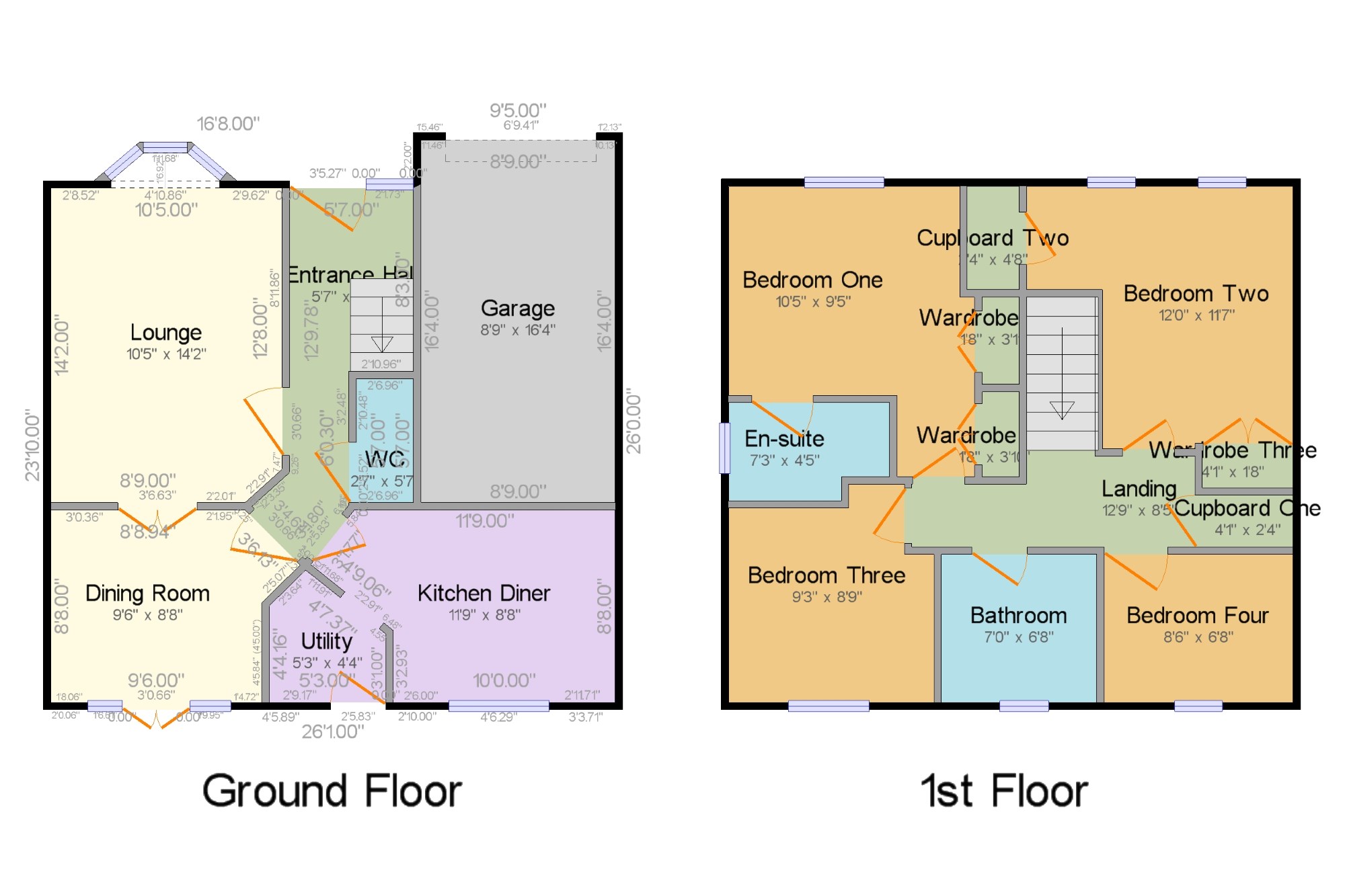 Bedroom One10'5" x 9'5" (3.18m x 2.87m). Double glazed uPVC window. Double radiator, two built in wardrobes.