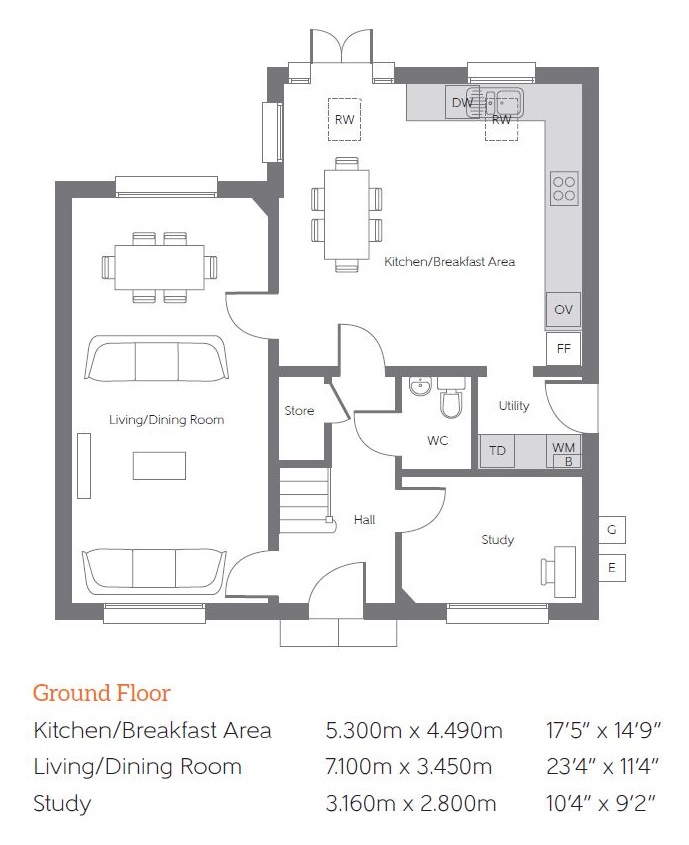 The entrance hall leads to all the main rooms on the ground floor including the stunning double aspect family lounge which runs the length of the home. This room is a great place to sit and relax or entertain family and friends.