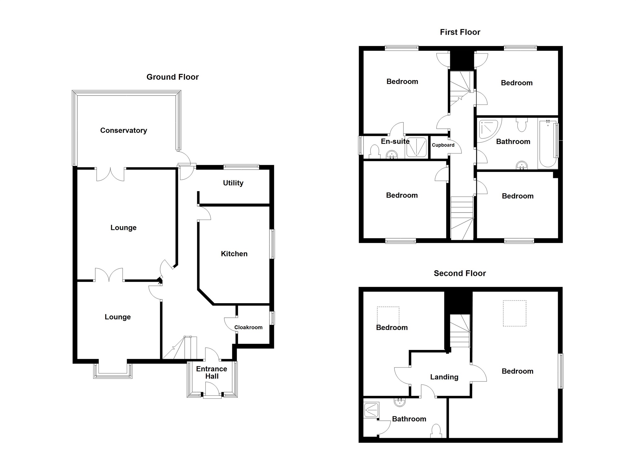 Internally the property comprises of entrance porch with second door to hall, lounge, conservatory, kitchen breakfast room with separate utility area and ground floor cloakroom. Double doors from the conservatory open onto a patio area of the enclosed rear garden mainly laid to lawn. To the first floor are four good size bedrooms and family bathroom, to the second floor is a further double bedroom, shower room and study (previously used as a cot room, but also offering itself as a dressing room, to provide a full master suite).