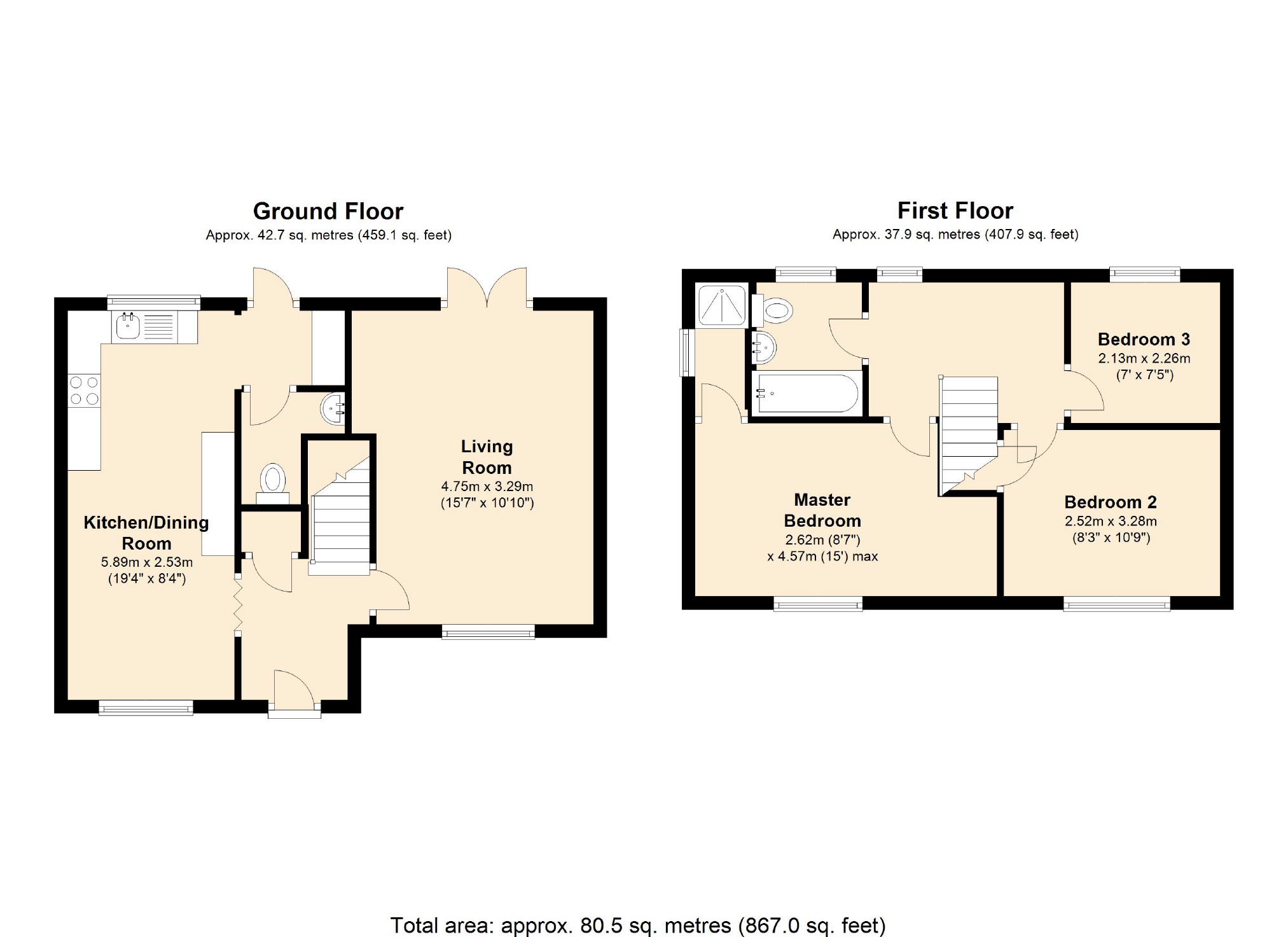 The accommodation comprises entrance hall, living room, fitted kitchen/dining room and Wc on the ground floor. The first floor offers master bedroom with ensuite shower, two further bedrooms and refitted family bathroom. Outside are enclosed gardens, garage and driveway parking.