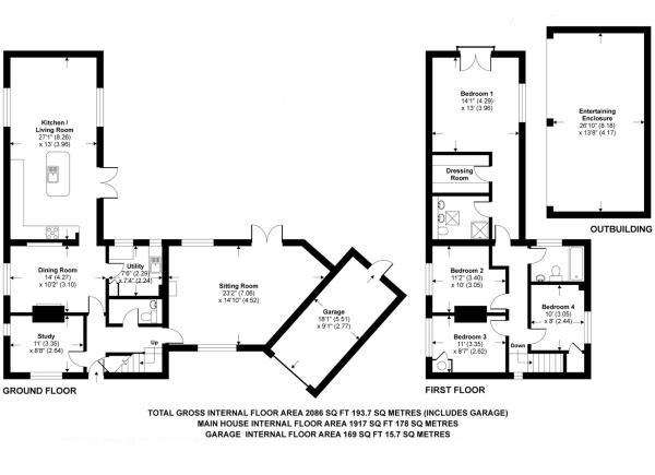 Large enclosed rear garden, primarily laid to lawn. Two large storage sheds. Rainwater taps and a large entertainment enclosure affectionately named 'The Barn' with space for seating, perfect for hosting a bbq in the summer. 'The Barn' measures 20' 10'' x 13' 8''.