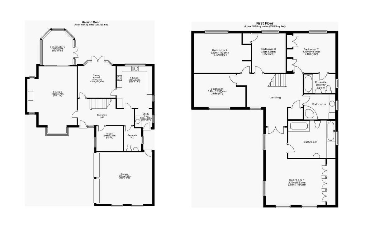 Having a four piece suite including a panel bath, separate shower enclosure, close coupled toilet and wash basin. Complete with complimentary tiling and a window to the side elevation.