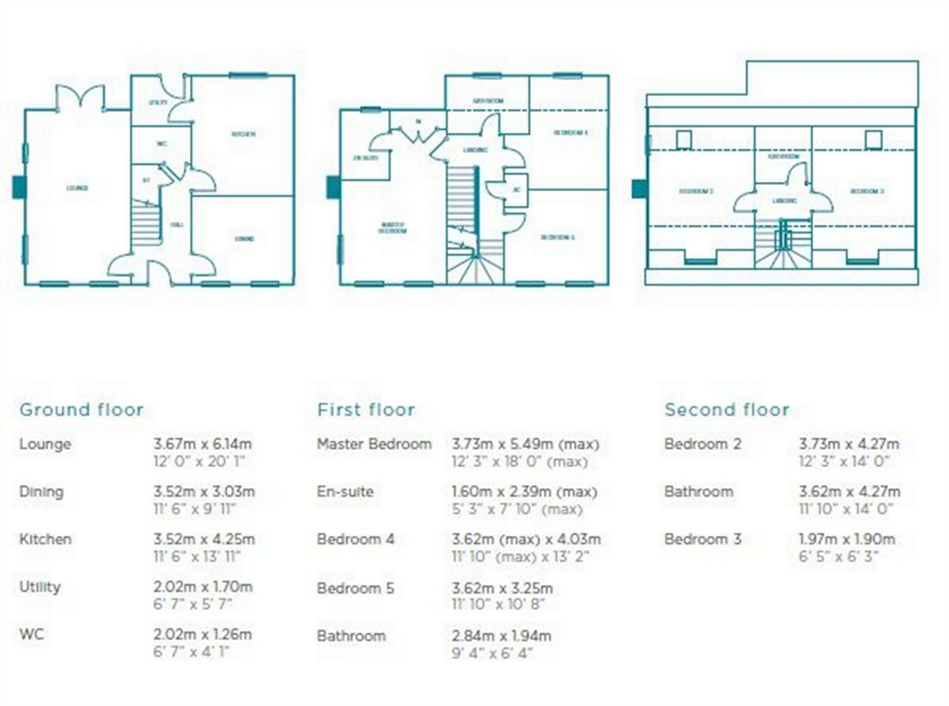 To the first floor is the master bedroom with en suite shower room and built in wardrobes, bedroom four and five and a family bathroom.
