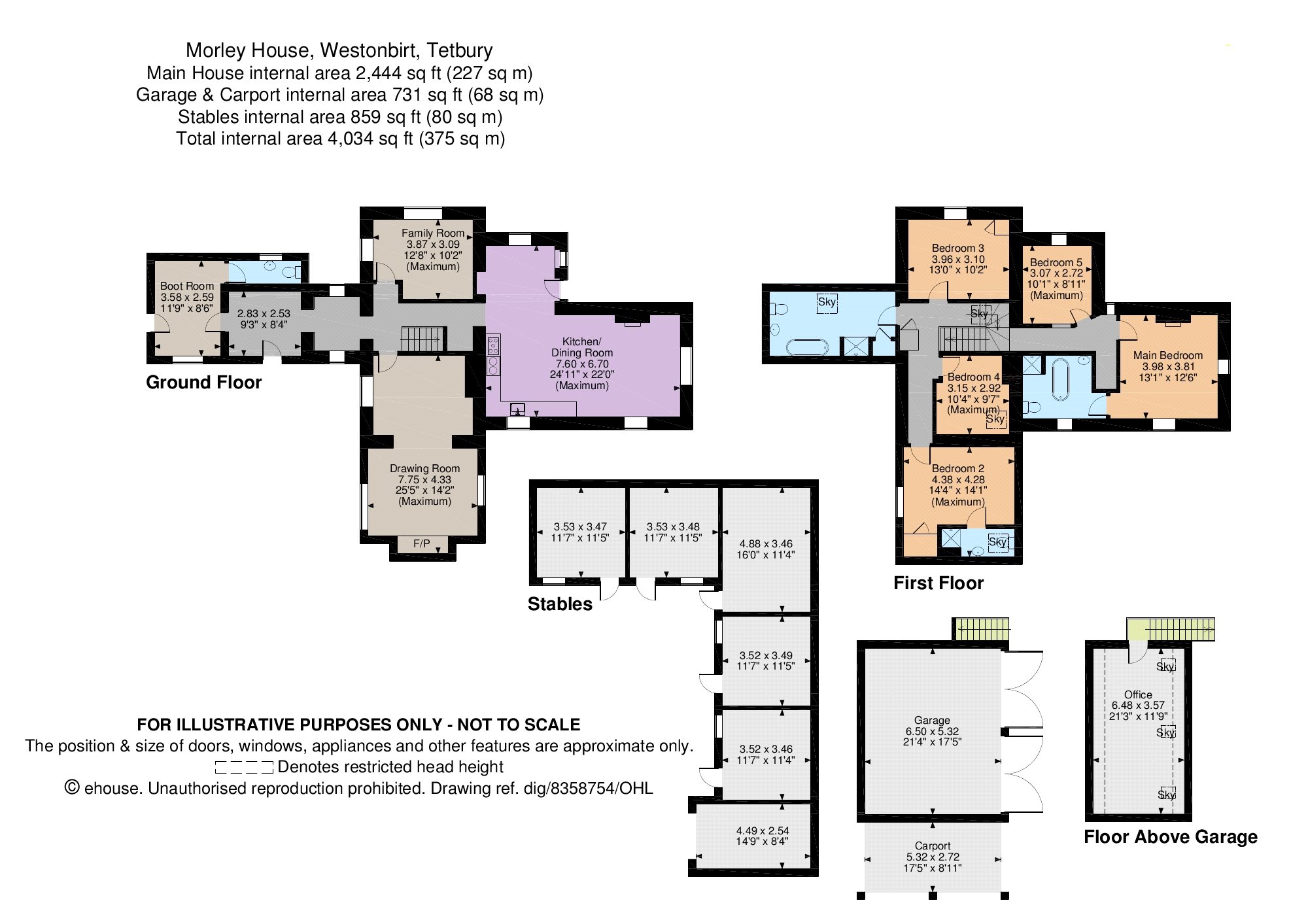 Morley House, which is not Listed, provides excellent, versatile and well-proportioned family accommodation. The ground floor offers generous and elegant reception rooms including a drawing room with a wood burning stove set in an exposed stone surround. There is an impressive kitchen/dining room with an open fire and two oven Aga which is a superb space for relaxed family living. There is also a family room, boot room and cloakroom all located on the ground floor. On the first floor, there are five good size double bedrooms, two of which are en-suite, and a stylish family bathroom.