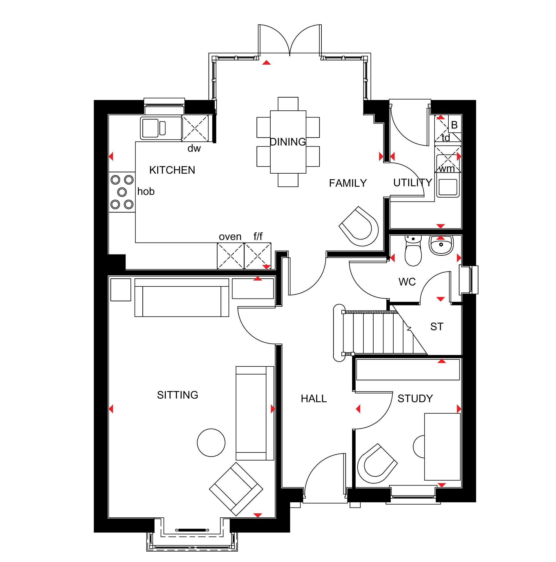 This stylish four bedroom home has a modern kitchen with integrated dining and family areas and French doors to the garden. There is an adjoining utility room, study and spacious lounge with bay window which is a perfect place to relax. Upstairs is a large master bedroom with en suite shower room, two more double bedrooms, a single bedroom and family bathroom with bath and separate shower.
