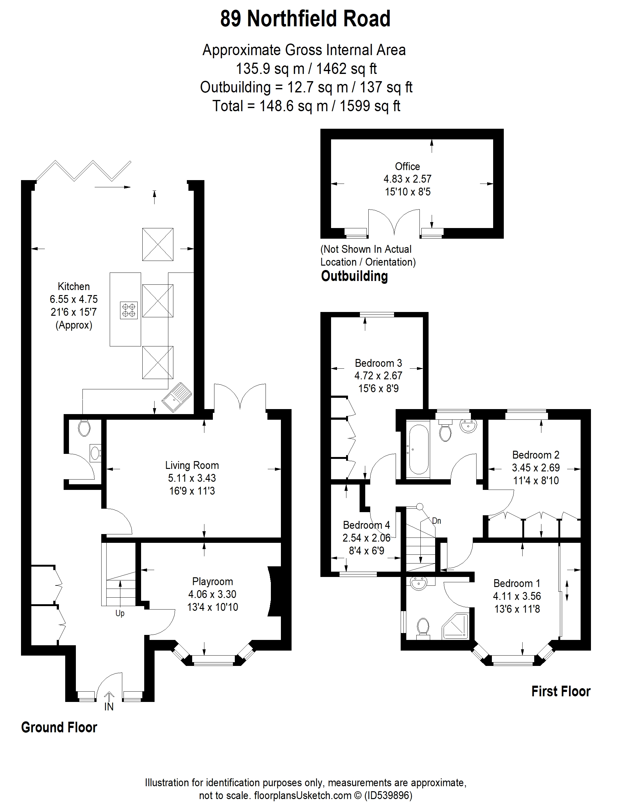 Description A stunning extended bay-fronted semi-detached home retaining much charm and many traditional features. The beautifully presented accommodation comprises an entrance hall, family room with a bay window, living room with a bay window and French doors leading to the garden, cloakroom and a superb open-plan kitchen/dining/living room with bi-fold doors opening onto the large east-facing garden. There is also a fantastic home office at the bottom of the garden, perfect for anyone looking to work from home. The first floor offers four generous sized bedrooms with an en-suite shower room off the master and a modern family bathroom.