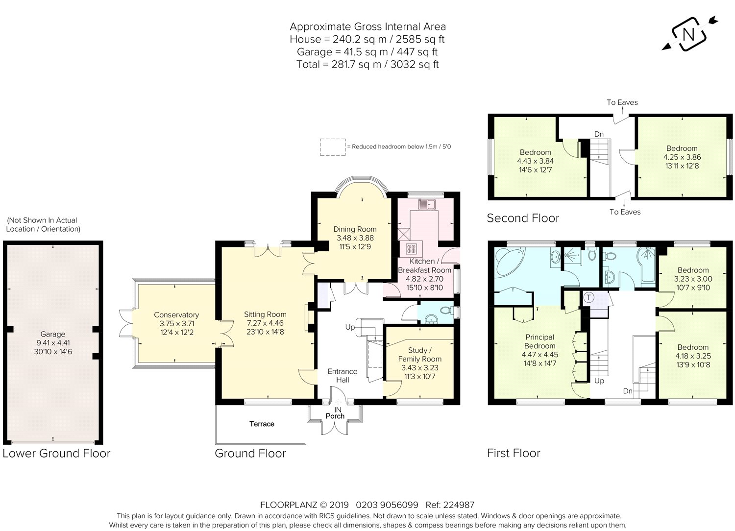 To the front the driveway provides parking for several cars and access to the large double garage, a side gate leads to the rear and there are steps leading up to the house. The delightful rear garden is arranged with split levels and is well screened with banks of rhododendrons and further established shrub borders hedging to one side and fencing around the perimeter with a terrace adjoining the house. In all is just under ¼ acre.