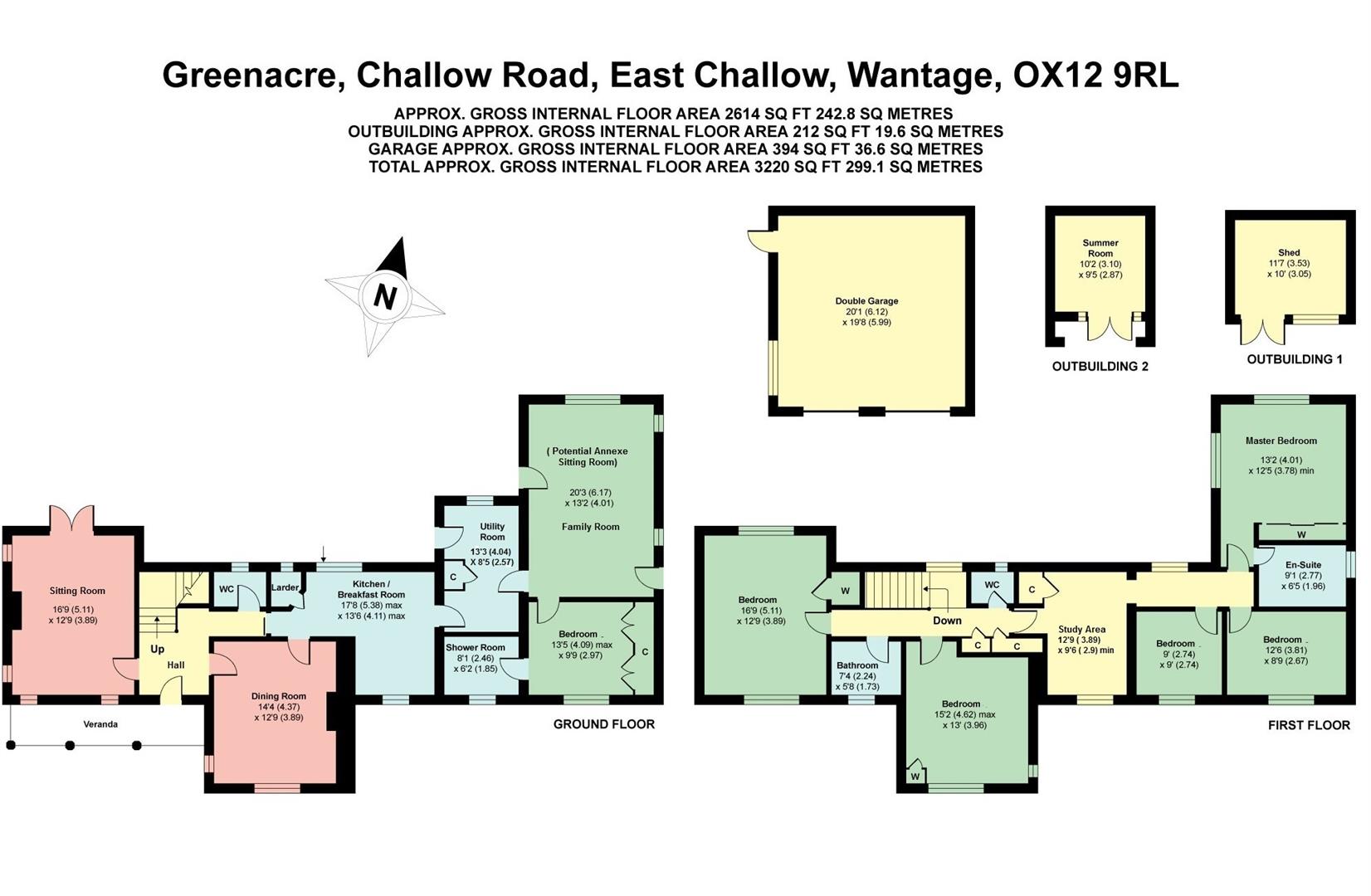Featuring a good sized sitting room, a separate formal dining room with open fireplace, a kitchen/ breakfast room and a utility room. The ground floor also provides a potential annexe currently providing a large reception room as an annexe sitting room and an adjacent bedroom with en-suite. To the first floor there are 5 extremely good sized bedrooms, a family bathroom as well as a landing study area. A particular feature of the property is the stunning and spacious double aspect master bedroom with en-suite.