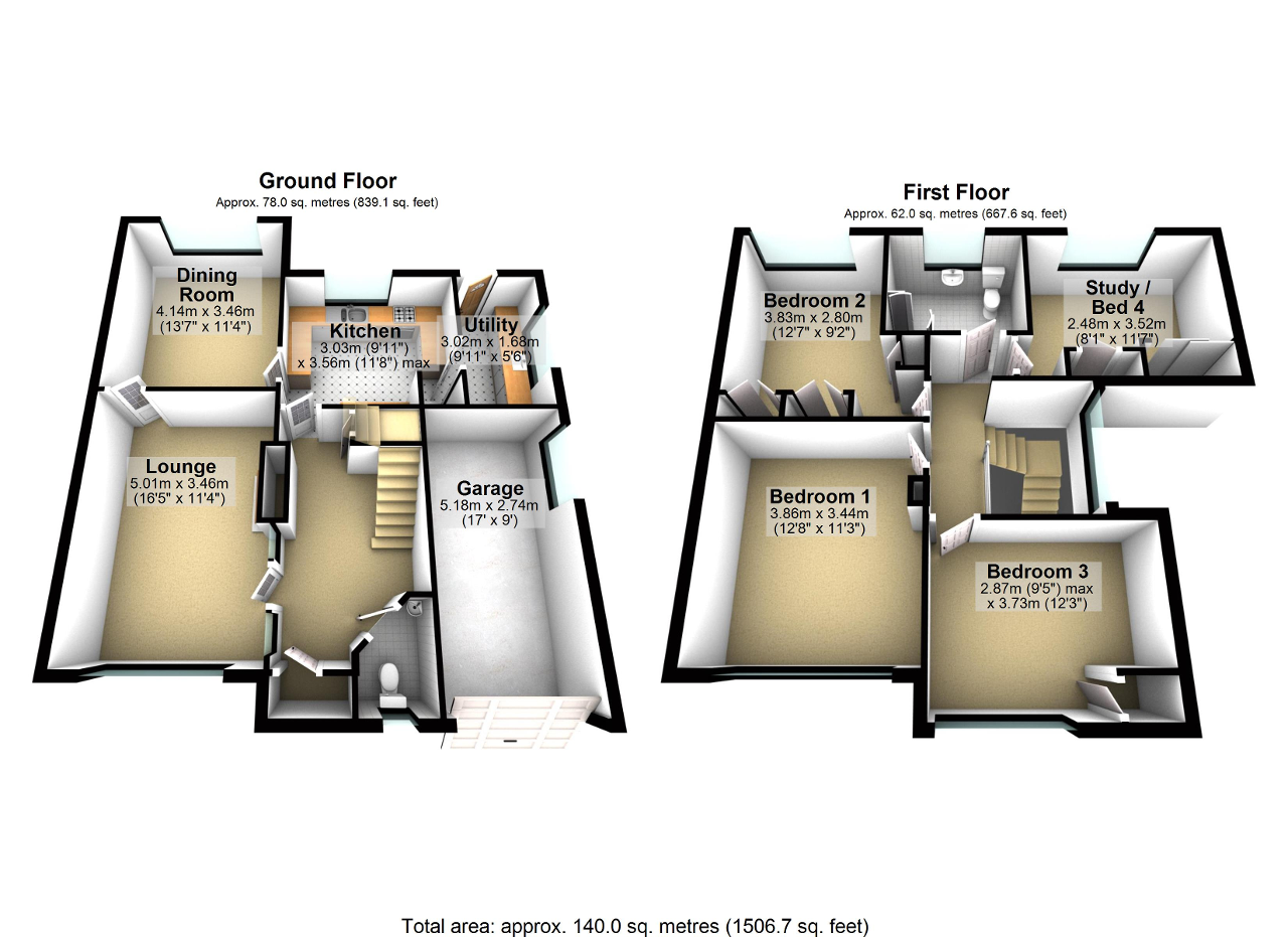 Stairs lead to the first floor with access to all rooms and window to the side elevation.