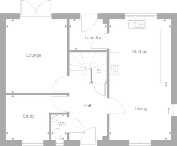 Forming a natural hub for everyday family life, the triple aspect kitchen and dining room has a separate utility room to ease household management. French doors open out from the lounge, and the study provides a perfect retreat for working at home. The gallery landing leads to four bedrooms, one of them en-suite. Help to Buy available on this home.