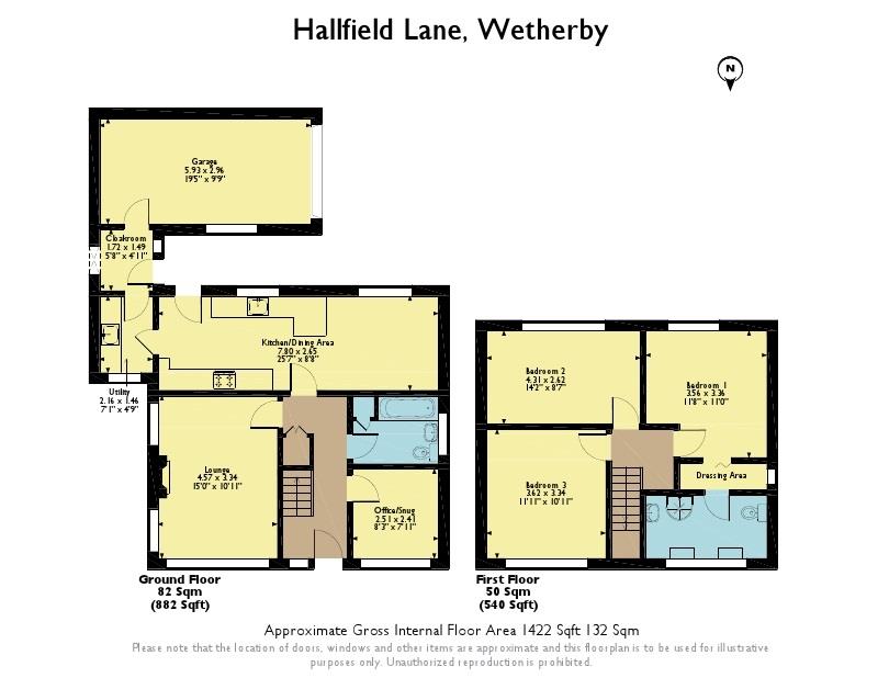 Leave Wetherby via Market Place. At mini roundabout turn left onto High Street. At next mini roundabout continue straight forward onto North Street and then turn right onto York Road. Take the second right turning onto Hallfield Lane where the property can be located on the right hand side, identified by a Hunters For Sale board. The property sits on the corner of Hallfield Lane and The Chase which is a cul-de-sac.