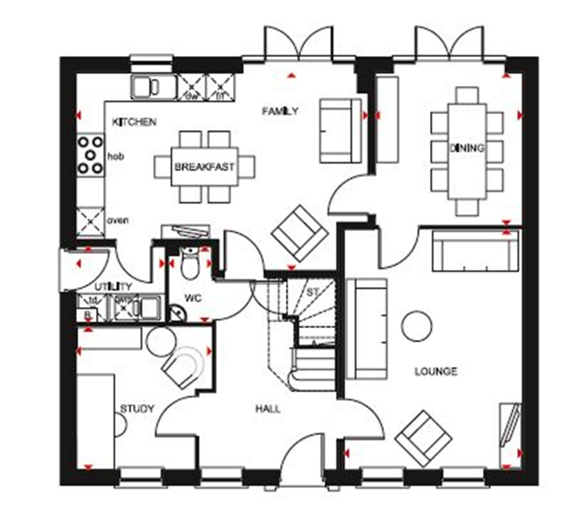 The Buckingham is an impressive five bedroom home set over three floors. Downstairs, there's plenty of room for the whole family with a sitting room, dining room, study and kitchen-family room with an added utility room and cloakroom. Upstairs are two double bedrooms and the master bedroom with an en suite and dressing area. The top floor houses two more bedrooms and a spacious bathroom.