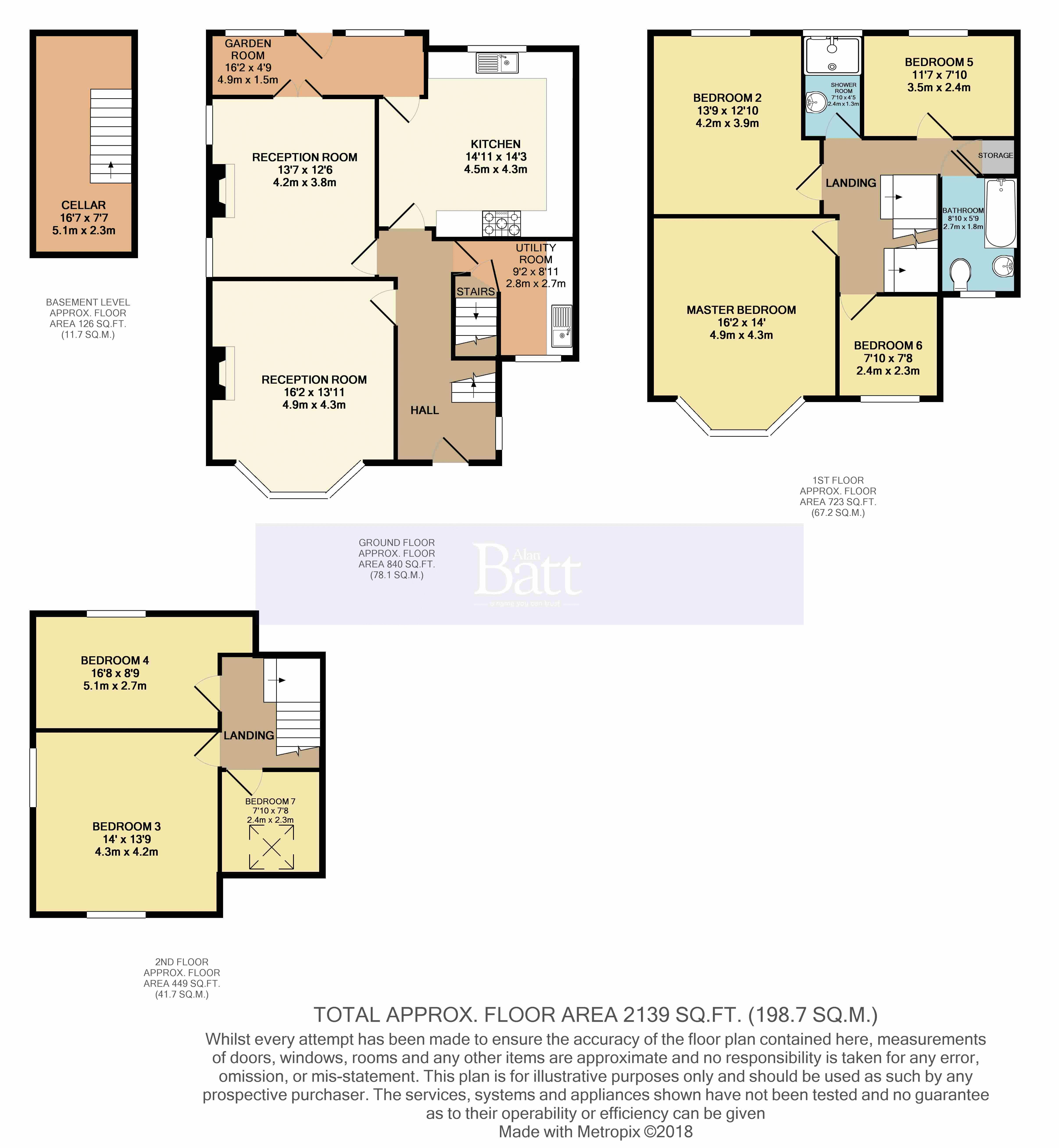 The accommodation itself offers approximately 2139 sq ft which is arranged over three levels and offers a very versatile layout which includes a cellar area, two reception rooms, a garden room and a beautiful fitted kitchen with utility room. There are four good sized bedrooms to the first floor with a shower room and fitted bathroom and to the second floor there are three further bedrooms.