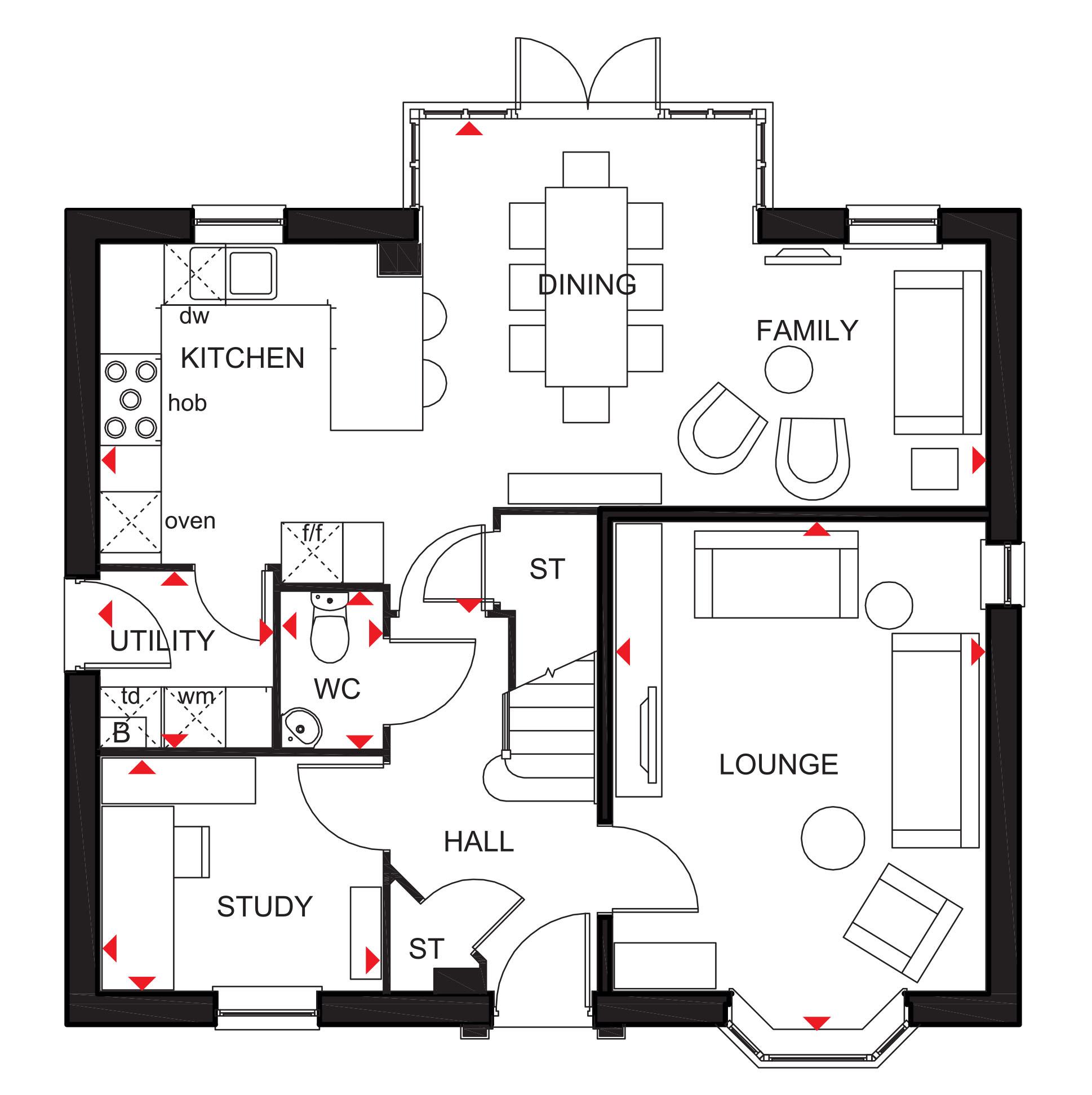 A home to suit all the family, The Bradgate offers a combination of flexible communal areas and dedicated quiet space. An expansive open-plan kitchen with separate utility has dining and family areas leading to the garden - and extended living space in good weather - via a beautiful walk-in glazed bay with French doors. A separate study and a lounge with attractive bay window provide room to work and relax in. Four double bedrooms upstairs, the spacious master with en suite, ensure everyone has space of their own. A family bathroom completes this truly superb family home.