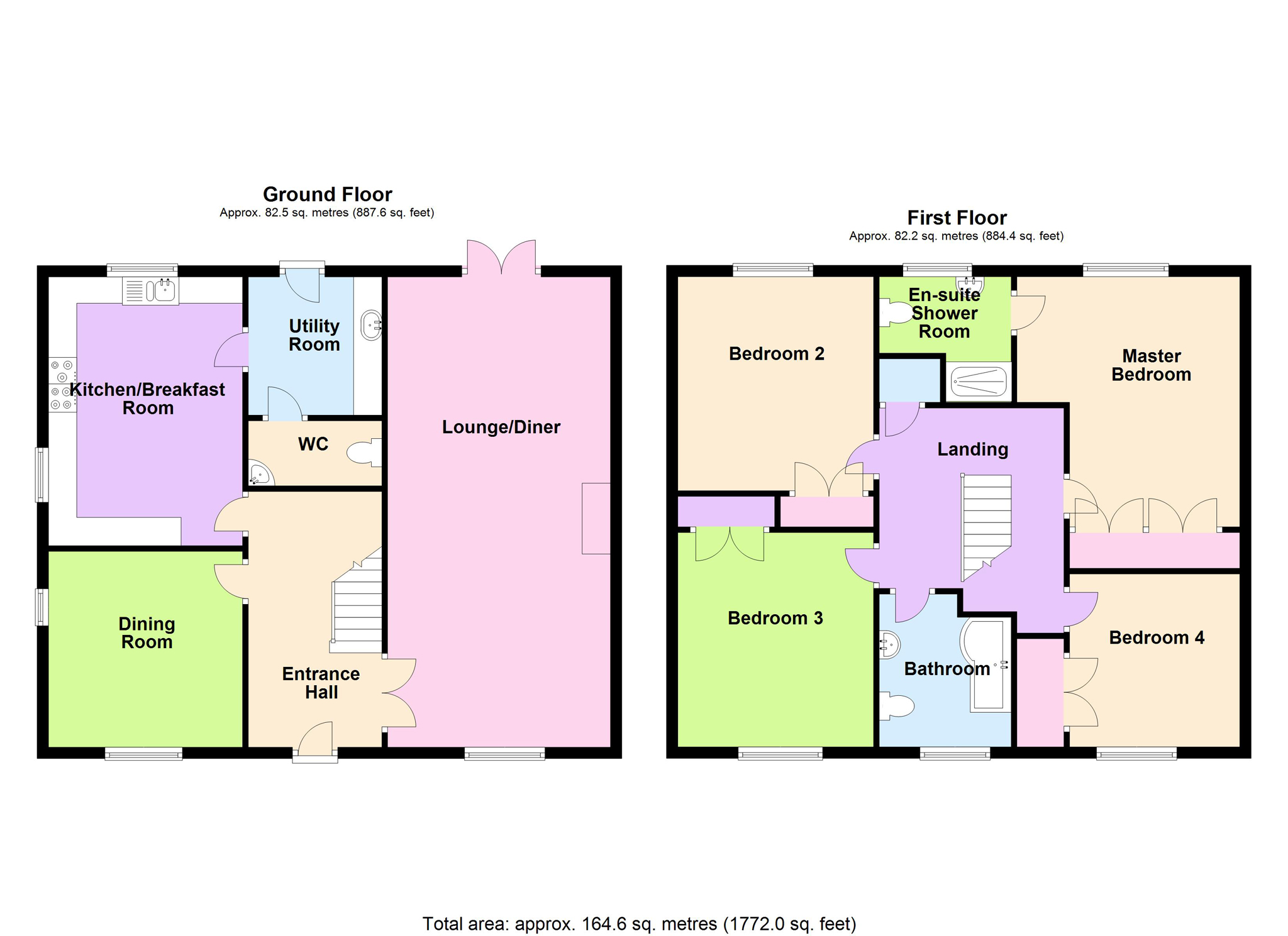 Total area approximately 164.6 square metres (1772.0 square feet)