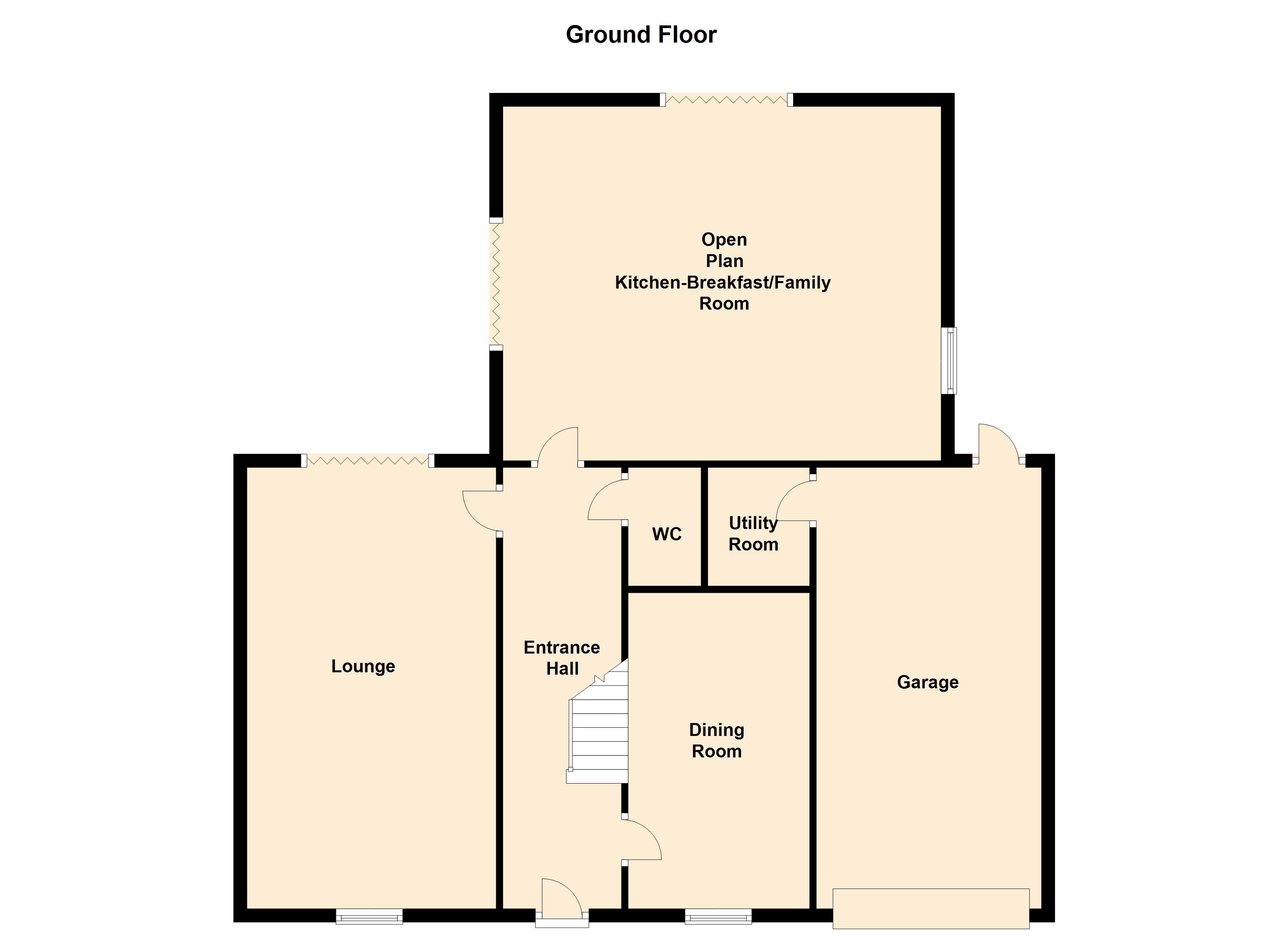 Open plan kitchen-breakfast/family room There will be an allowance for the purchaser to have their own choice of kitchen. Twin double glazed bi fold patio doors.