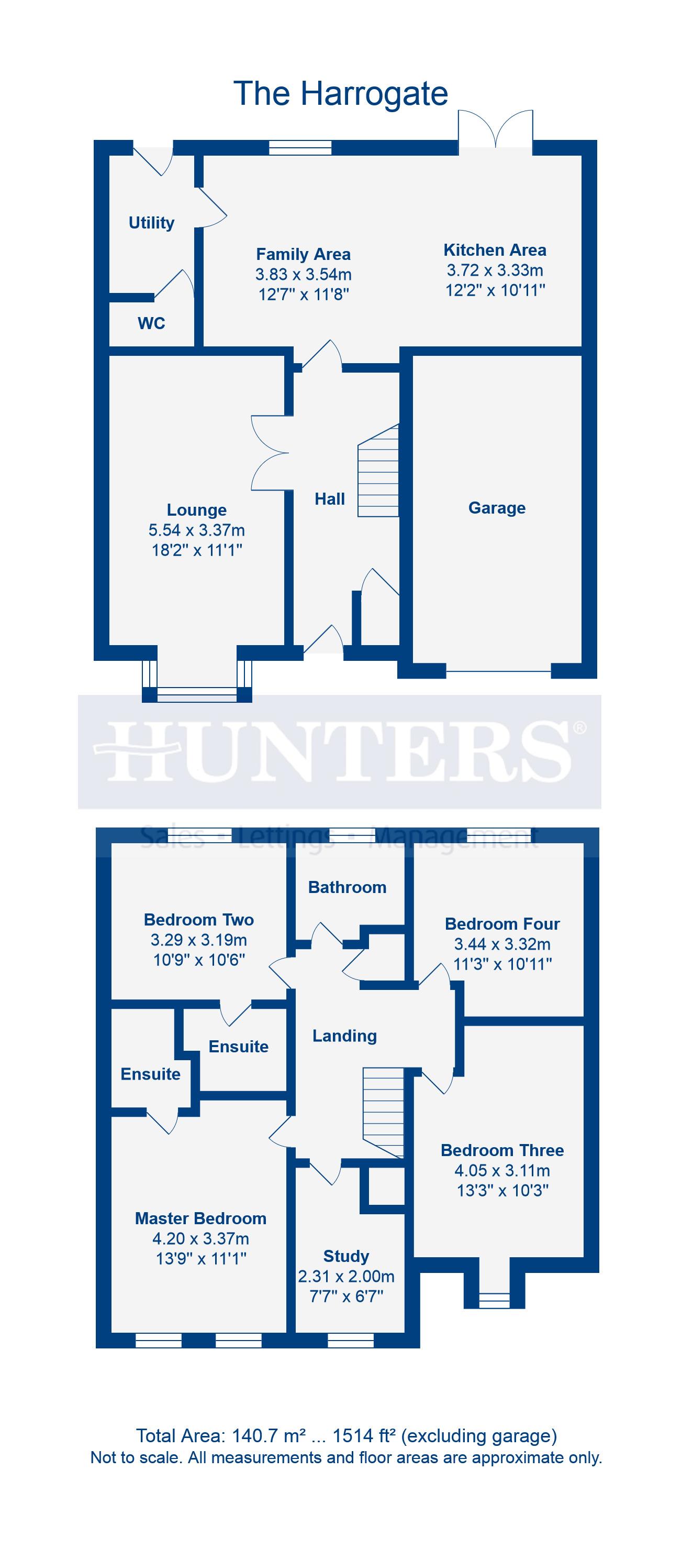 The Harrogate is an exceptional four bedroom detached home featuring quality kitchen with dining and family areas, adjoining utility room and French doors opening onto the rear garden. The airy lounge has a beautiful bay window and to the first floor are four double bedrooms, with ensuite shower rooms to bedrooms one and two, a study and family bathroom. The home also comes with an integral garage.