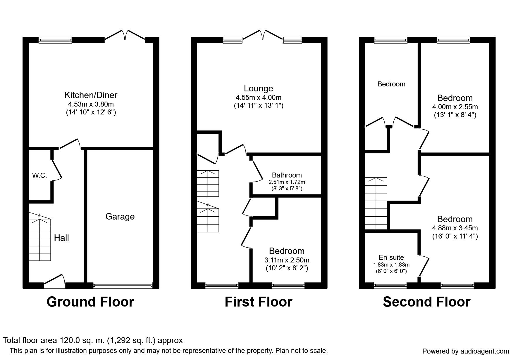 Available now! This is a very good example of a spacious three storey town house in a very popular location. The accommodation comprises of entrance hall, kitchen diner, cloakroom WC and garage. To the first floor is a good sized lounge, bedroom and family bathroom WC. To the second floor is the master bedroom with en suite shower WC and further two bedrooms. EPC grade B