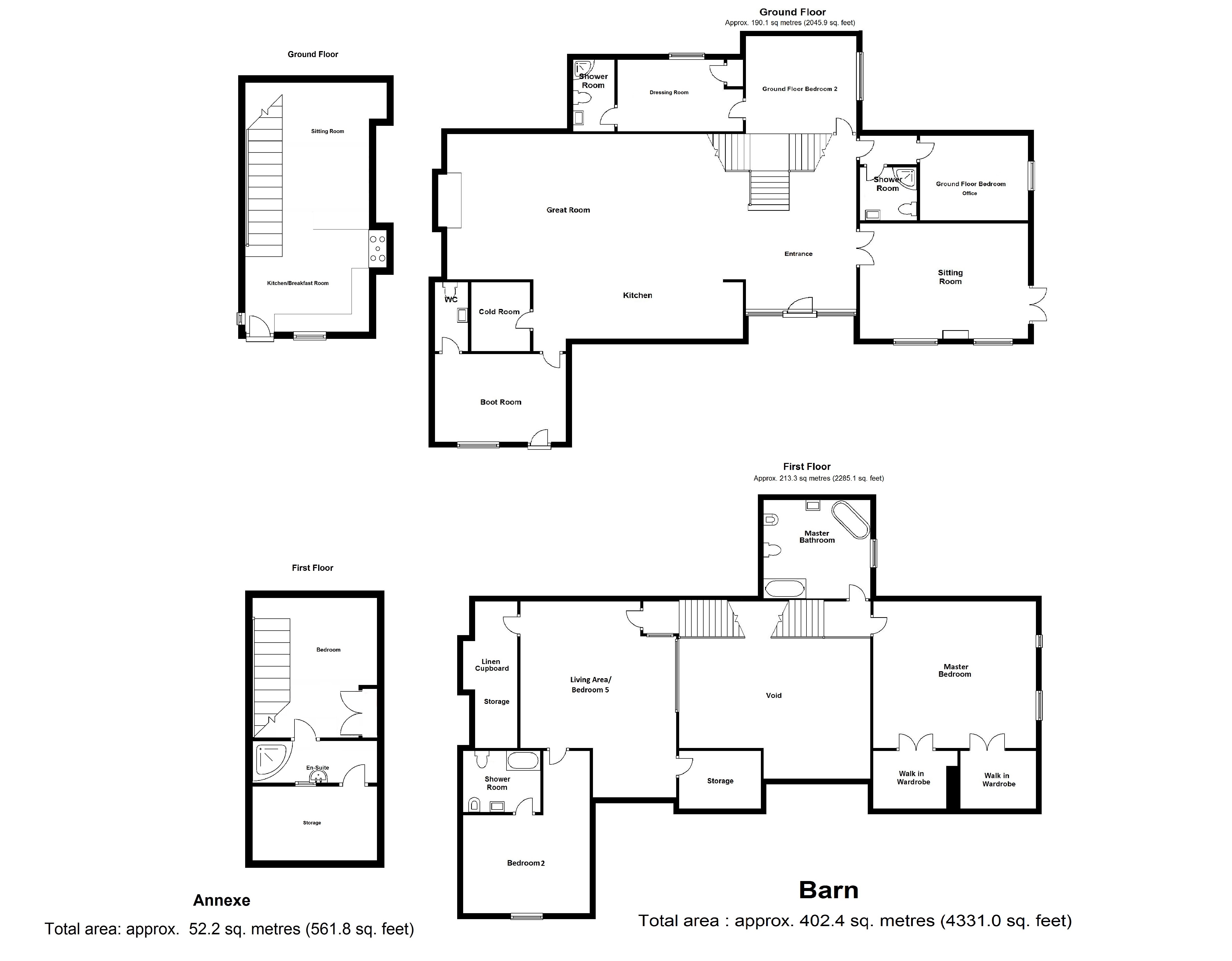 5-6 bed detached barn conversion.Short drive to Gt Dunmow & 10 min to Stansted Airport & Canary Wharf by car is approx 50 mins. Comprising large entrance hall, open plan living/kitchen/dining area, separate study, further private lounge, boot room, downstairs wc, plus walk in pantry. There are 2 beds to the ground floor with en-suites & further 2-3 bedrooms to the 1st floor with en-suites, there is also a 1st floor living area/bedroom 5. Plus separate 1 bed cottage. Outside the property enjoys a large terrace area plus further lawn areas. Available 29th December