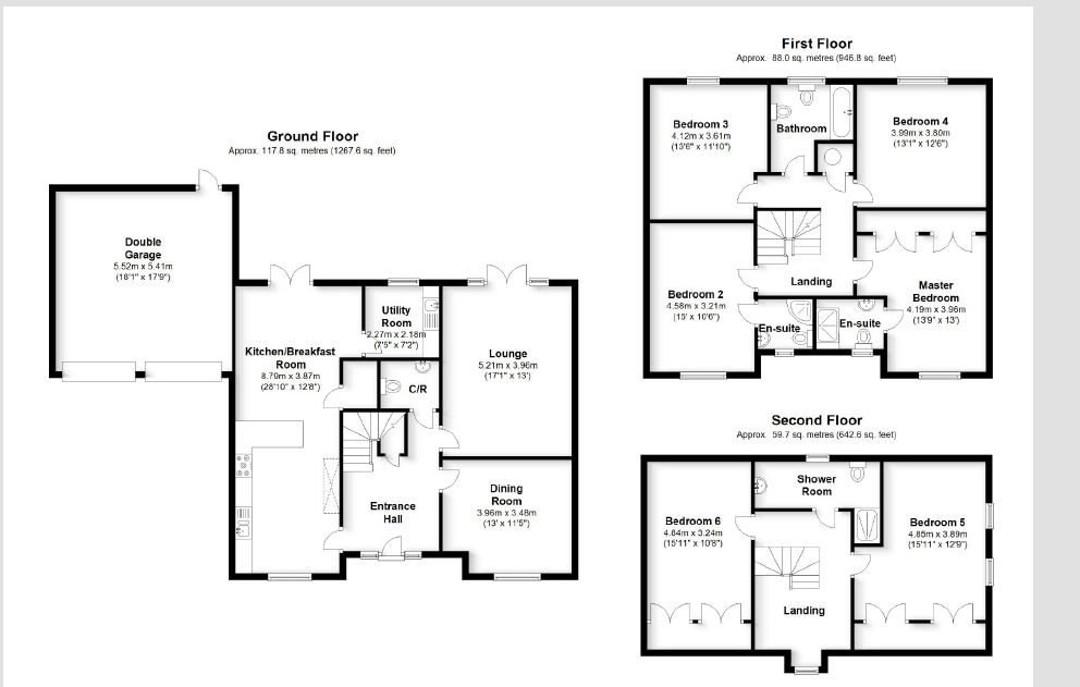 This is a 6 bedroom house with open plan fitted kitchen and dining room with French doors to the rear garden. A separate Sitting room, Study and Utility. En suites to 2 bedrooms and built-in wardrobes to 3 bedrooms.