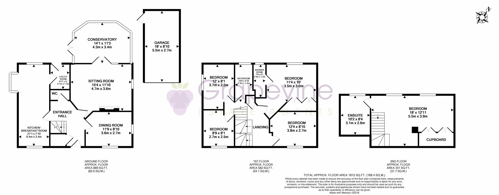 Downstairs accommodation comprises entrance hall, re fitted cloakroom, sitting room, conservatory, dining room, re-fitted kitchen/breakfast room, utility room. To the first floor there is a guest bedroom with re-fitted en suite, three further bedrooms and a re-fitted family bathroom. To the second floor there is a loft conversion featuring a master bedroom with dressing area and large en suite.
