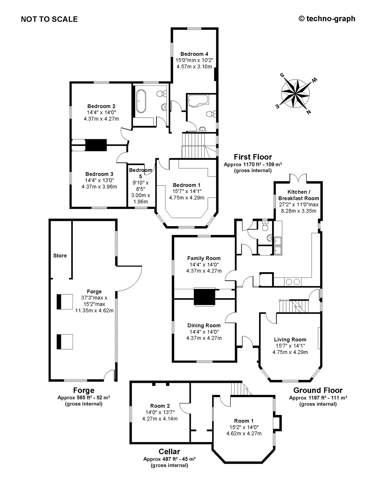 The original blacksmiths forge is arranged as ancillary accommodation to the main house providing a large room with original features including fire pit and bellow and work benches, with a bedroom and shower room.