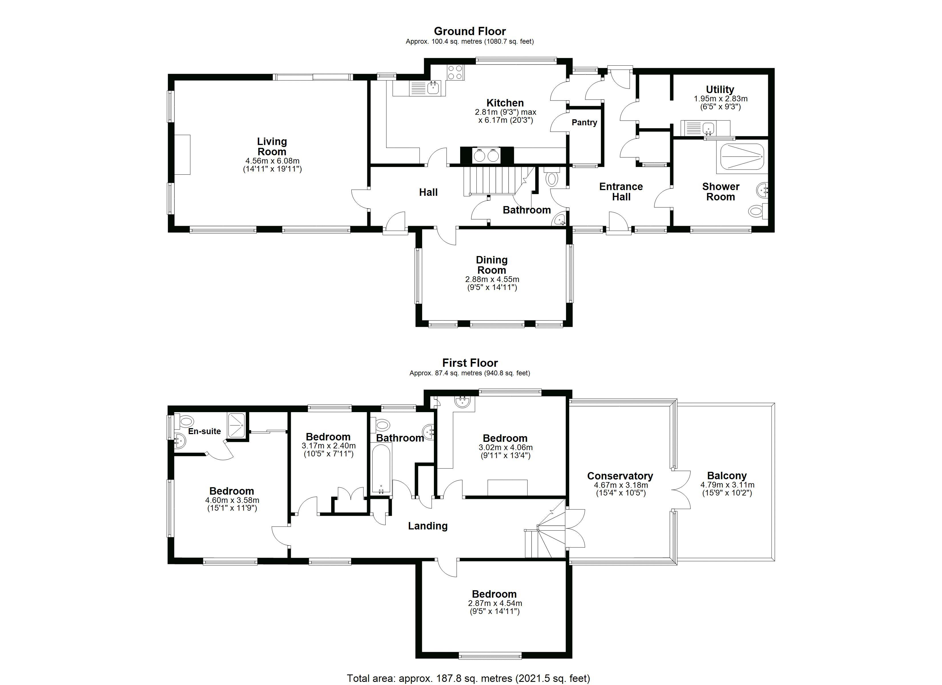 The first floor comprises of master bedroom with ensuite, three further bedrooms, and bathroom, with a first floor conservatory and balcony overlooking the established gardens and woodland.