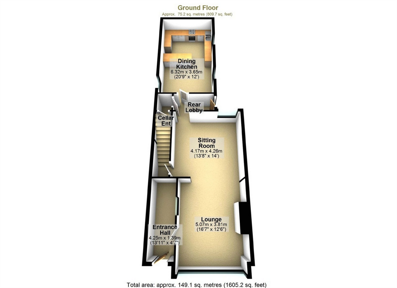 Having a uPVC side entrance door giving access to the rear garden and door giving access to the cellar.
