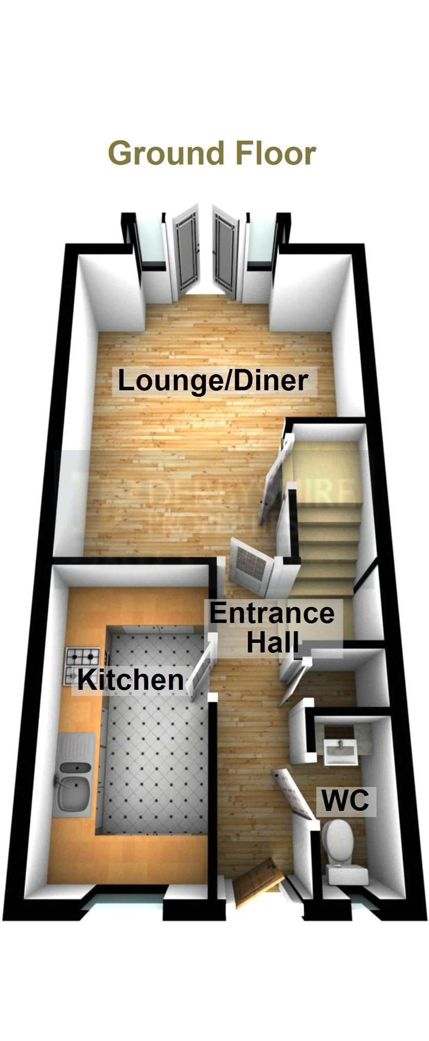 The property is approached via a modern composite style front entrance door giving access into the hallway having laminate flooring, central heating radiator and stairs to the first floor accommodation.